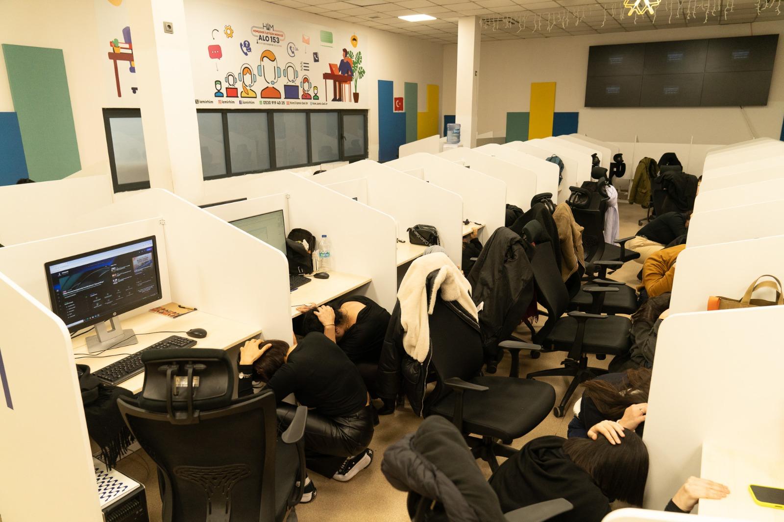 İzmir Büyükşehir Belediyesi Afet İşleri ve Risk Yönetimi Dairesi Başkanlığı öncülüğünde, kurum çalışanlarının deprem, yangın ve benzeri acil durumlarda doğru davranış geliştirmesini sağlamak amacıyla kapsamlı bir afet ve acil durum tatbikatı gerçekleştiriliyor. Tatbikatların son adresi Basın, Yayın ve Halkla İlişkiler Dairesi Başkanlığı oldu. Basın Yayın ve Tanıtım Şube Müdürlüğü ile Halkla İlişkiler Şube Müdürlüğü çalışanlarının katıldığı uygulamada, senaryo gereği İzmir merkezli 6,8 büyüklüğünde bir deprem meydana geldiği duyuruldu. Çalışanlar, bulundukları alanlarda 40 saniye boyunca “çök-kapan-tutun” yöntemiyle korunmaya alındı. Sarsıntının ardından bina içindeki sistem odasında elektrik kaynaklı yangın çıktığı anons edildi ve alarm sistemi devreye sokuldu.