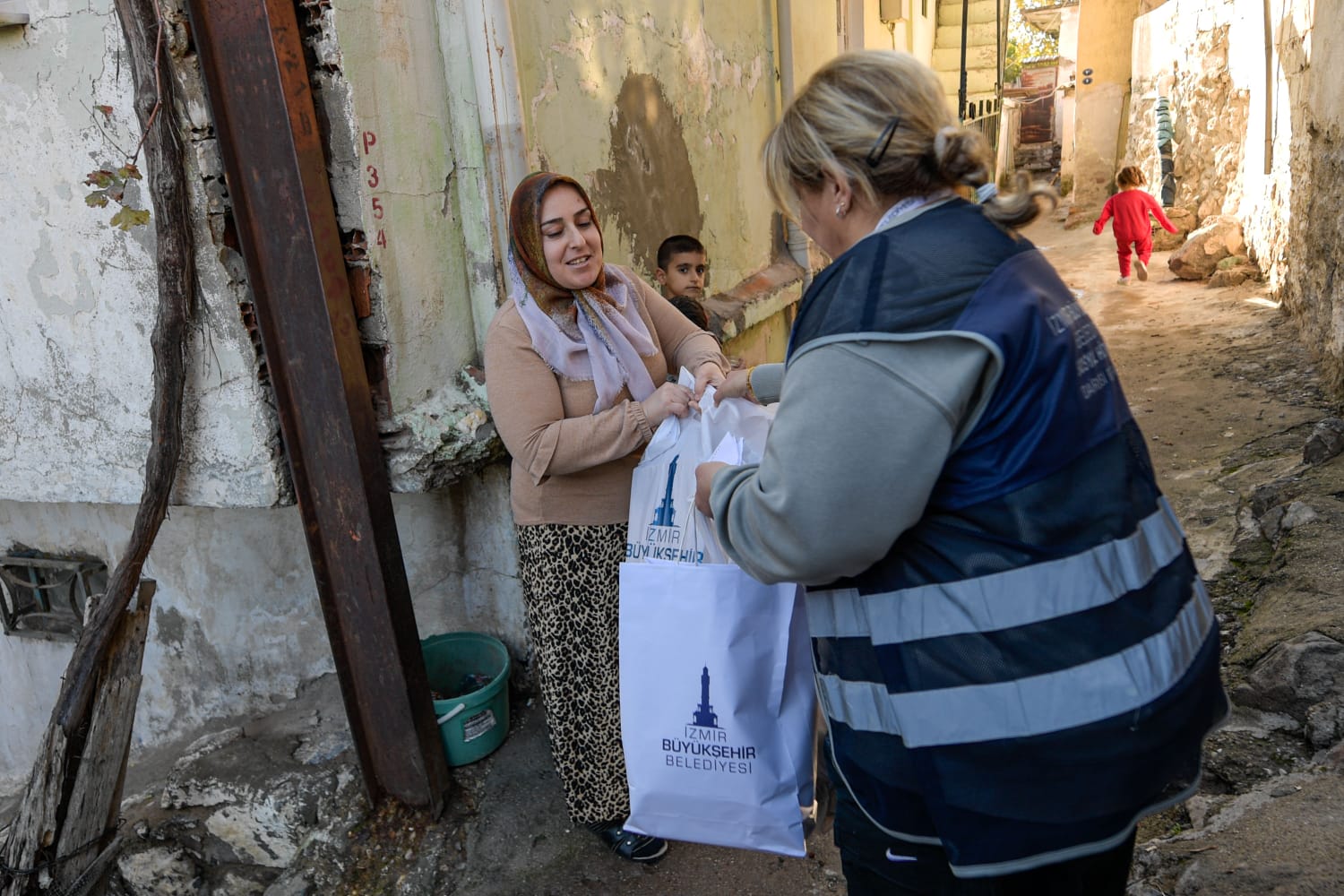 İzmir Büyükşehir Belediyesi, soğuk havaların hissedilmesiyle battaniye, soba, yakacak, bot ve monttan oluşan kış destek paketlerini ihtiyaç sahibi ailelere ulaştırmaya başladı. Sosyal Yardım Takip Sistemi’ne kayıtlı ve belirli bir puan üzerindeki ihtiyaçlı haneleri kapsayan yardım programı kapsamında nakdi destek de sağlandı. İzmir Büyükşehir Belediyesi’nin kentin farklı noktalarında açtığı Dayanışma ve Danışma Noktaları ile bizvariz.izmir.bel.tr internet adresi üzerinden başvuruda bulunan 54 bin 280 haneye nakdi yardım aktarıldı.