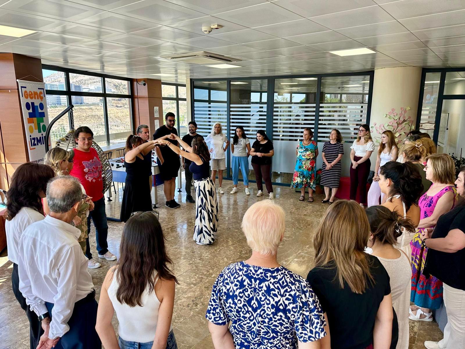 İzmir Büyükşehir Belediyesi Kadın ve Aile Hizmetleri Dairesi Başkanlığı’na bağlı Gençlik Çalışmaları Şube Müdürlüğü ile Sağlık İşleri Dairesi Başkanlığı’na bağlı Sağlıklı Yaşam Şube Müdürlüğü iş birliğinde "Yaş değil, fikir konuşur" sloganı ile düzenlenen eğitim programı Genç İzmir Macera Park’ta gerçekleştirildi. Mülakat ile seçilen 17 genç ve 10 ileri yaş bireylerin katılımıyla yapılan eğitimde Avrupa Dayanışma Programı tanıtımı, proje döngüsü yönetimi (PCM) eğitimi, AB portalı üyelik işlemleri ve proje yazma atölyeleri yapıldı.