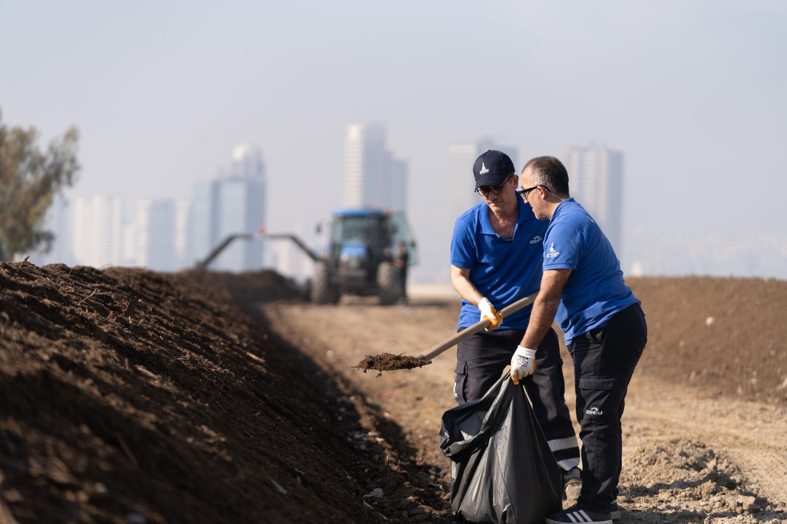 İzmir Büyükşehir Belediyesi Park ve Bahçeler Dairesi Başkanlığı Ağaçlandırma Şube Müdürlüğü Peyzaj Mimarı Yağmur Altun, kompost üretirken belirli nem ve oksijenle birlikte azot ve karbon döngüsünü dikkate alarak bir karışım hazırladıklarını belirtti. Bu karışımı belirli aralıklarla karıştırdıklarını aktaran Altun, “Bu sayede kontrollü bir çürüme elde etmiş oluyoruz. Bu kontrollü çürümeyle elde ettiğimiz kompost, bizim toprağımızı zenginleştiren doğal gübre halinde geri kullanabileceğimiz materyale dönüşmüş oluyor. Belediyemizin Park ve Bahçeler Dairesi Başkanlığı bünyesinde budama atıkları, çim atıkları gibi atıklardan elde ettiğimiz materyalleri kompost alanımızda kompost üretiminde kullanıyoruz. Yılda 4 bin metreküp kompost üretimi hedefliyoruz” diye konuştu.