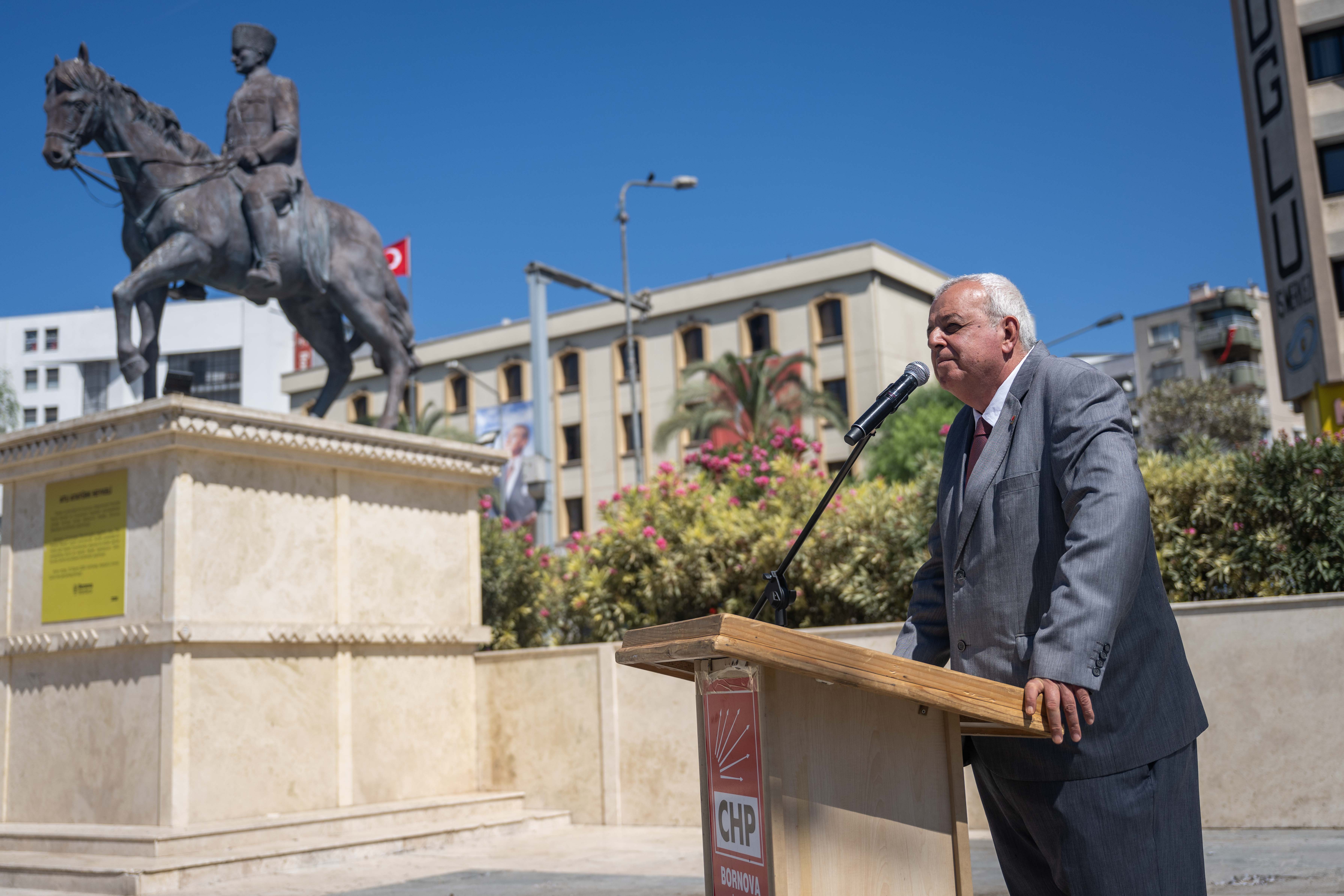 CHP Bornova İlçe Başkanı Av. Ertürk Çapın, “Güzel İzmirimizin kurtuluşunun 103. yılı ile kurtuluşun ve kuruluşun partisi CHP’nin 102. kuruluş yıldönümünü ilçe örgütüm adına kutluyorum. 102 yılımızda yüzümüz ne yazık ki gülmüyor. Dün bu devleti kuran Atatürk’ün partisi CHP’ye devleti saldırttılar. 5 bin polisle, TOMA’larla, ellerinde kalkanları, biber gazları ile… Yanlarına bir de hain bulmuşlar, işgal kuvveti gibi partimize saldırdılar. Partimizin il binasına 5 bin polisle yapılan baskını herkes gördü. O koltuklara böyle mi oturacaksınız” dedi.