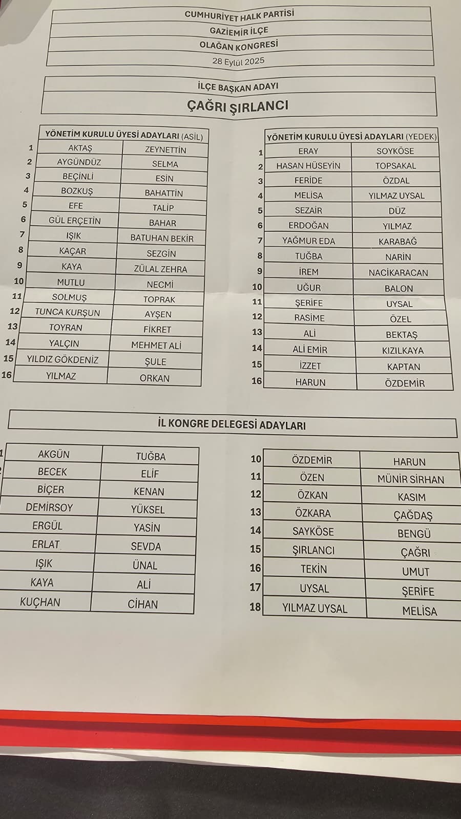 Öte yandan Şırlancı, Belediye Başkanı Ünal Işık’ın da tam desteğini alarak CHP Gaziemir'in yeni ilçe başkanı oldu.