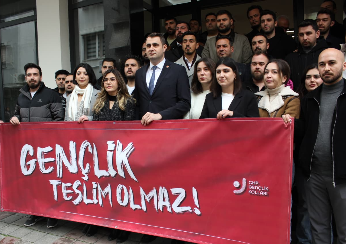 EGEPOSTASI - Cumhuriyet Halk Partisi (CHP) İzmir İl Gençlik Kolları, CHP Gençlik Kolları Genel Başkanı Cem Aydın hakkında verilen hapis cezası ve Adalar İlçe Gençlik Kolları Başkanı Ramazan Yıldız’ın tutukluluk durumuna ilişkin CHP İzmir İl Başkanlığı önünde basın açıklaması gerçekleştirdi. Türkiye genelinde eş zamanlı düzenlenen açıklamanın İzmir ayağında konuşan CHP İzmir İl Gençlik Kolları Başkanı Ruhsar Selis Çelik Kınacı, gençlik örgütlerine yönelik siyasi baskının arttığını söyledi.