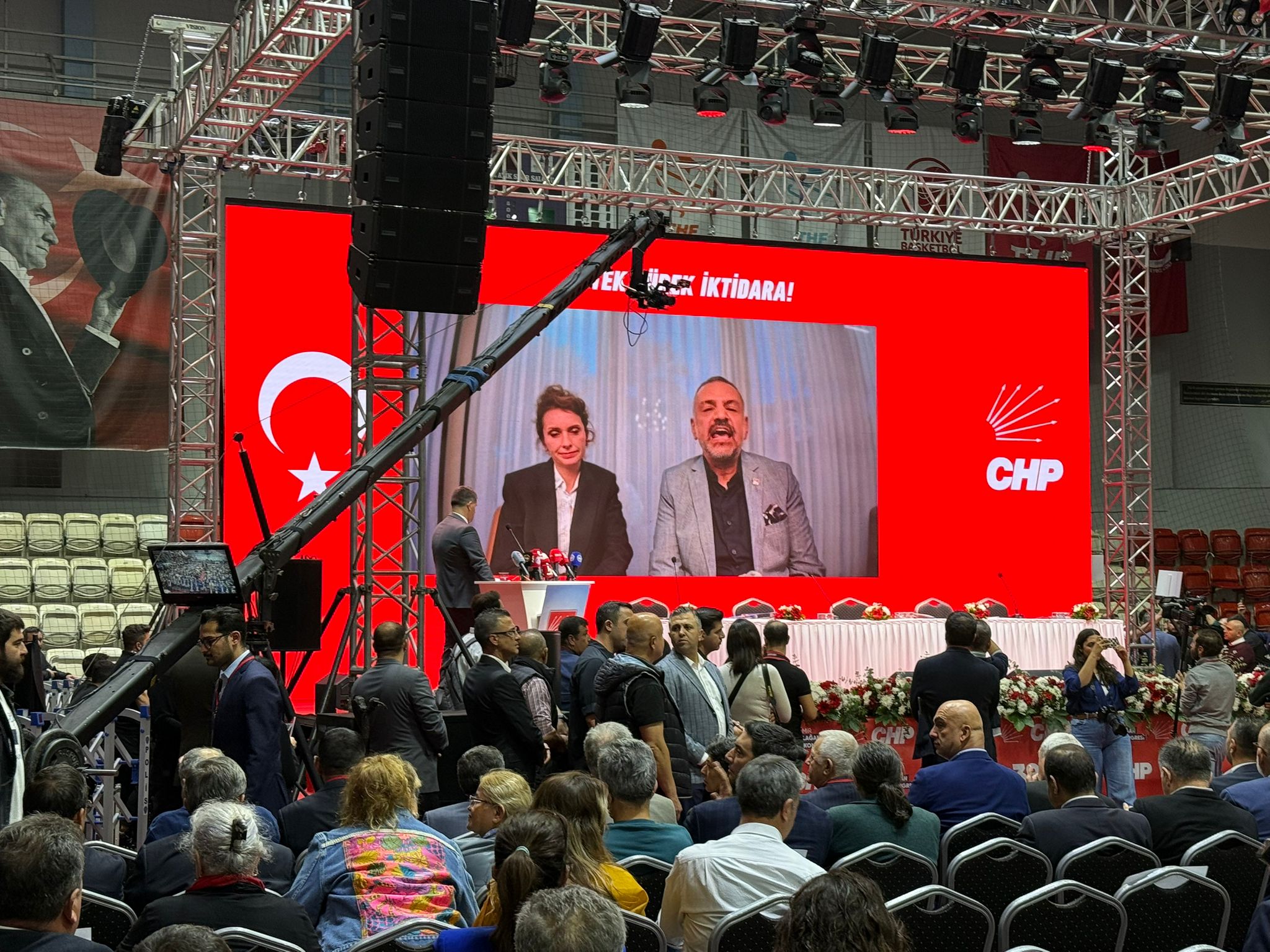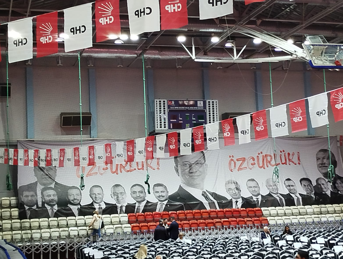 Kongrenin gerçekleşeceği salonda ise hareketlilik başladı. Partinin bayraklarıyla donatılan salonun duvarlarında yer alan pankartta, CHP Genel Başkanı Özgür Özel, partinin tutuklu Cumhurbaşkanı Adayı ve İstanbul Büyükşehir Belediye Başkanı Ekrem İmamoğlu ve Çağatay Güç'ün görseliyle birlikte, 'Biz Kazanacağız' sloganı yer aldı. Aynı pankarın üzerinde tutuklu bulunan CHP'li belediye başkanlarının isimleri de yer aldı.