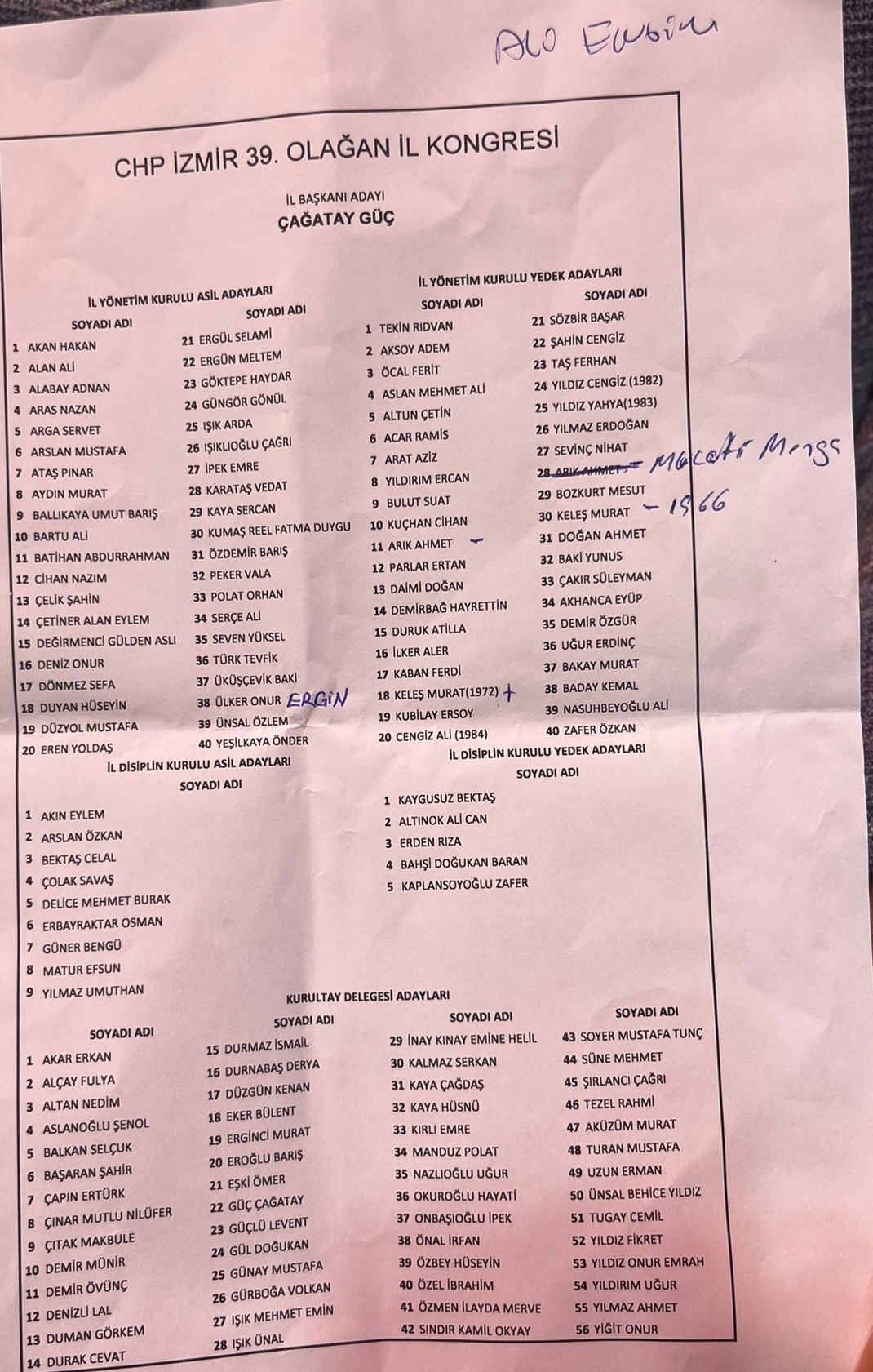 Partinin gerçekleştirilecek 39. Olağan Kurultayı için oy kullanabilecek kurultay delegelerinin olduğu liste ise belli oldu.