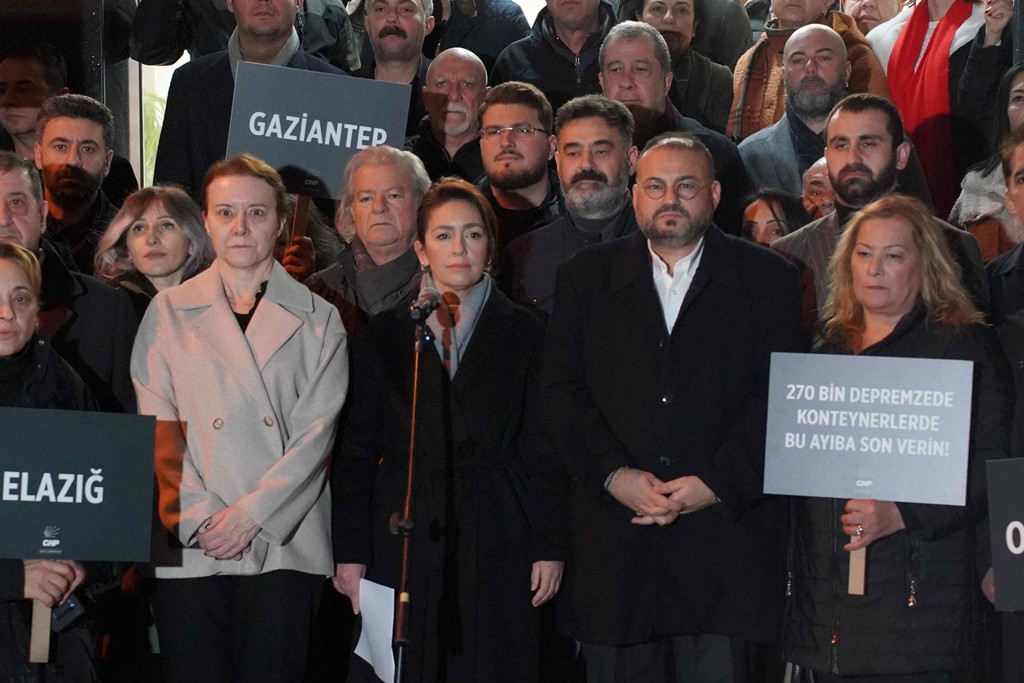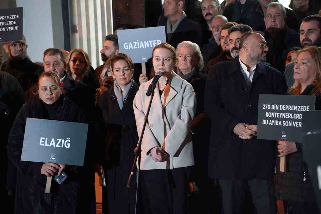 CHP İzmir İl Başkanlığı önünde İlk depremin yaşandığı sabaha karşı 04.17’de yapılan ve saygı duruşu ile başlayan törene CHP İzmir İl Yönetim Kurulu, İzmir Büyükşehir Belediye Başkan Vekili Zafer Levent Yıldır, CHP Konak İlçe Başkanı Serkan Kalmaz, Konak Belediye Başkanı Nilüfer Çınarlı Mutlu, parti üyeleri ve vatandaşlar katıldı. Törene katılanlar ellerinde depremden etkilenen illerin isimleri ve “270 bin depremzede konteynerlerde yaşıyor bu ayıba son verin” yazan dövizler taşıdı.