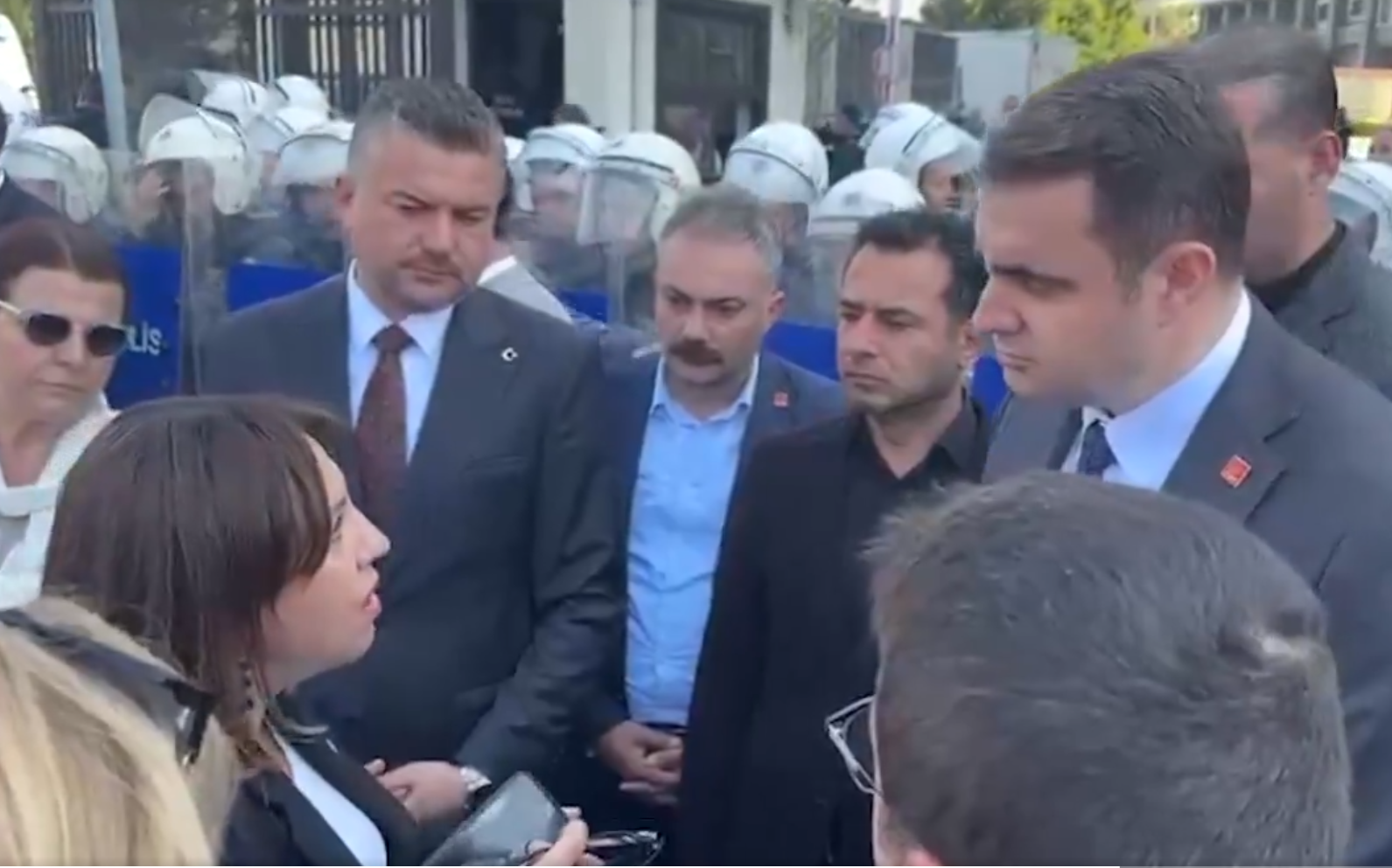 “Şu an trafikte sorun var. Sabahtan beri partili arkadaşlarımızı kenarda tuttuk. TOMA’ları kenarlara çekip trafiği daralttılar, şehirdeki trafik sistemi aksadı. Buradaki amaç, yapılan eylemi provoke etmektir. Az önce hiçbir sorun yokken, tam toplantımıza başlayacakken Atatürk imzalı pankartlarımızı indirdiler. Bu bilinçli bir uygulamadır. Biz burada hukuk çerçevesinde eylem yapıyor, basına sesimizi duyurmaya çalışıyoruz. Yapılan hukuksuzluktur. Bu bina eninde sonunda İzmir Büyükşehir Belediyesi’ne geri dönecektir. Şu anda yapılan, süre verilmeden gerçekleştirilen tahliyedir. Burada birçok arkadaşımız kamu personeli olarak görev yaptı, ben de yaptım. İçeride İzmir Büyükşehir Belediyesi avukatları bulunuyor. Bu işlem hukuka aykırıdır ve sorumlular hakkında suç duyurusunda bulunacağız.”