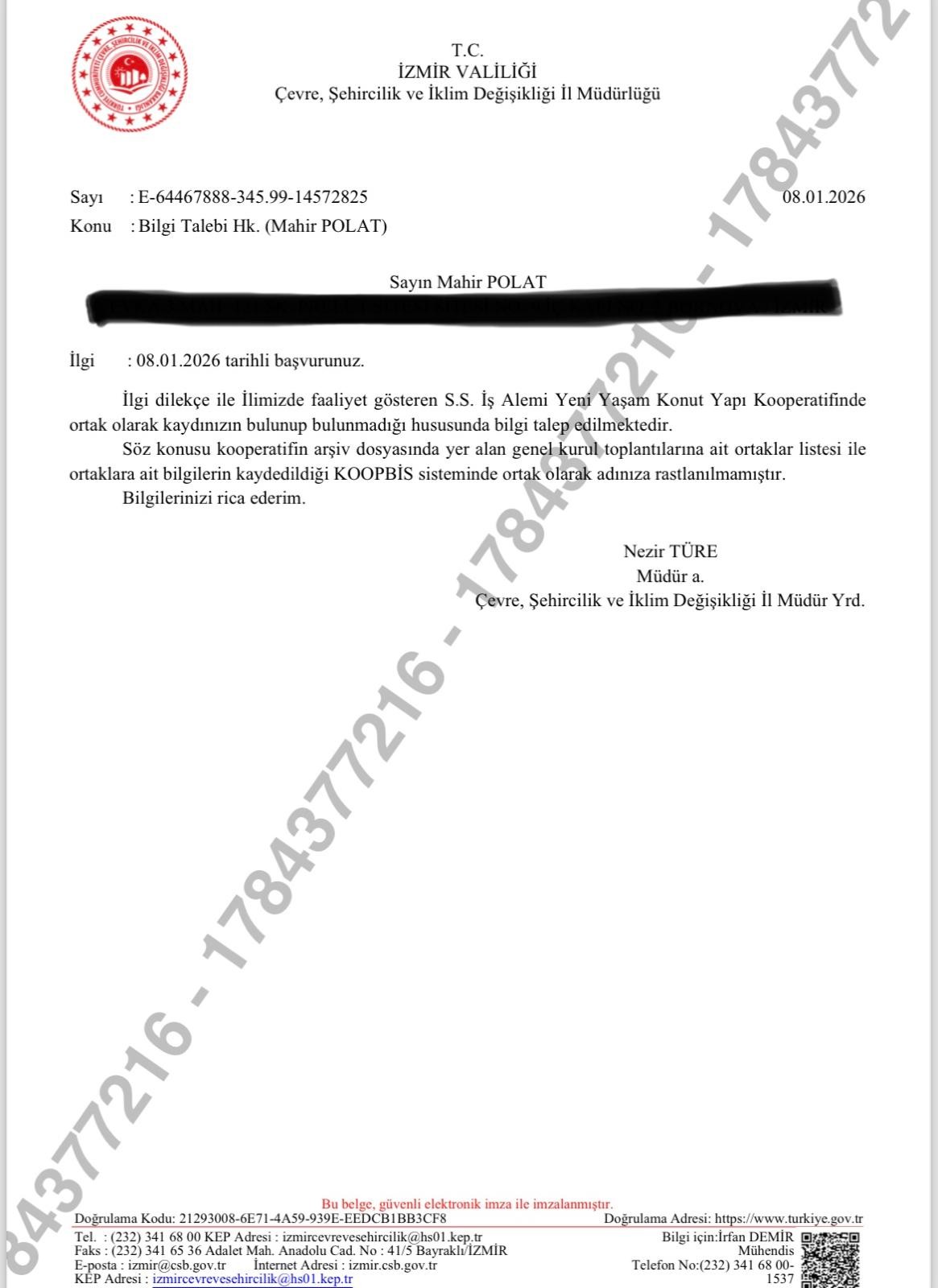 "BEN BAHSİ GEÇEN KOOPERATİFE HİÇBİR ZAMAN ÜYE OLMADIM"