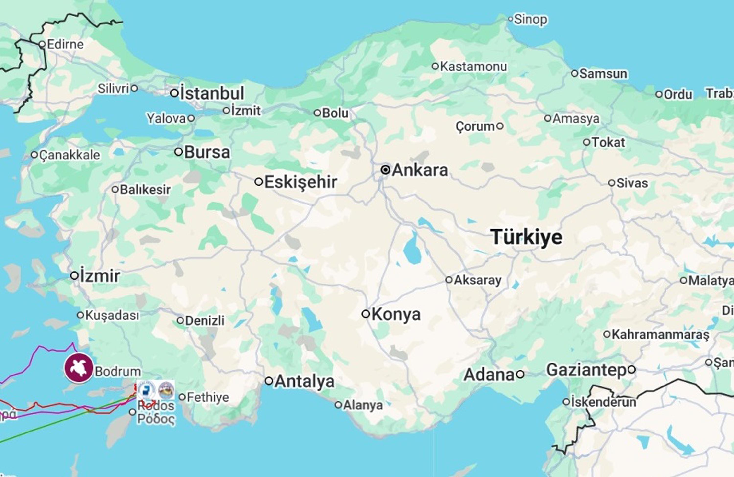 DEKAMER Müdürü Prof. Dr. Yakup Kaska, “Yaptığımız çalışmaların dünya çapında duyulmasında ve tanınmasında Tuba büyük önem taşıyor. Tuba şu an Bodrum açıklarında. Umuyoruz ki suların biraz daha soğumasıyla önümüzdeki ay içerisinde kaplumbağamız tekrar göç yoluna devam edecektir" dedi. (DHA)