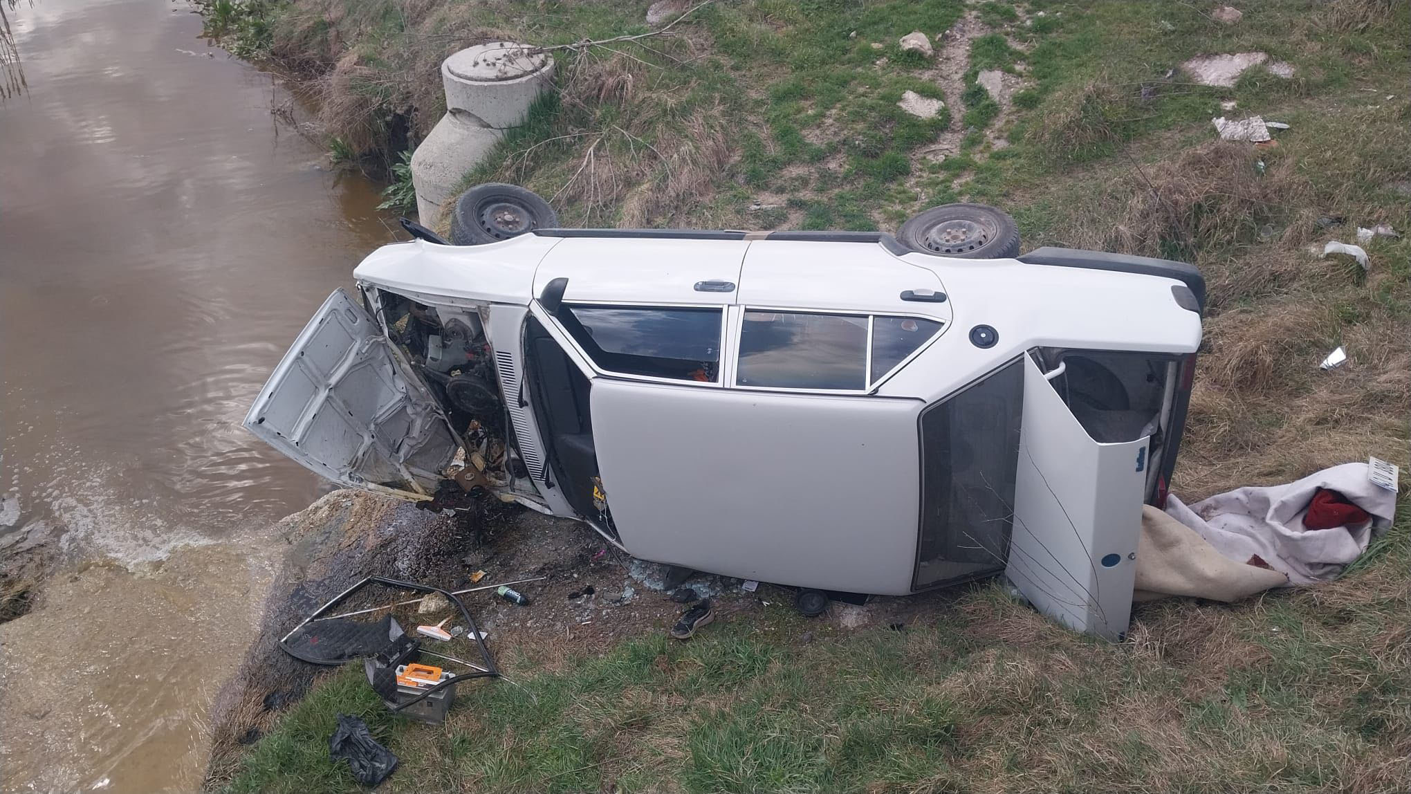 Çarpışmanın etkisiyle kontrolden çıkan 43 U 3804 plakalı otomobil, köprü korkuluklarını yıkarak dere yatağına uçtu.