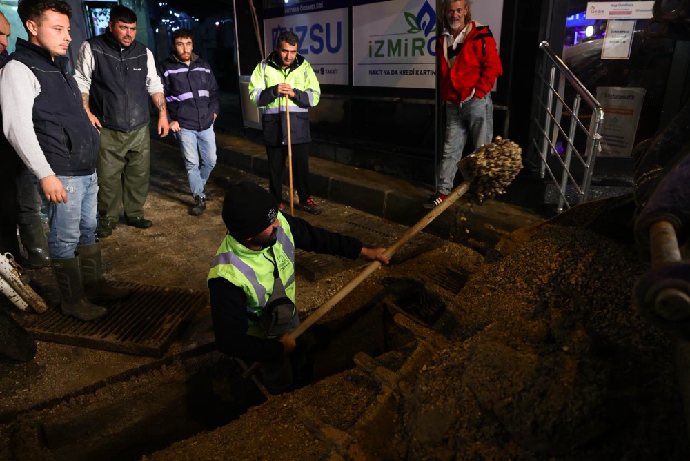 İZSU ekipleri de çalışmalara tam kapasite destek verdi. Sahaya 3 kombine araç, 5 vidanjör, 3 arıza aracı, 4 kepçe, 2 kuka, 2 kamyon ve 2 ekskavatör olmak üzere toplam 21 araç ve 35 personel sevk edildi. İZSU ekipleri özellikle ana hatlar, taşkın kontrolü ve altyapı güvenliği başlıklarında belediye ekipleriyle tam koordinasyon içinde görev aldı.