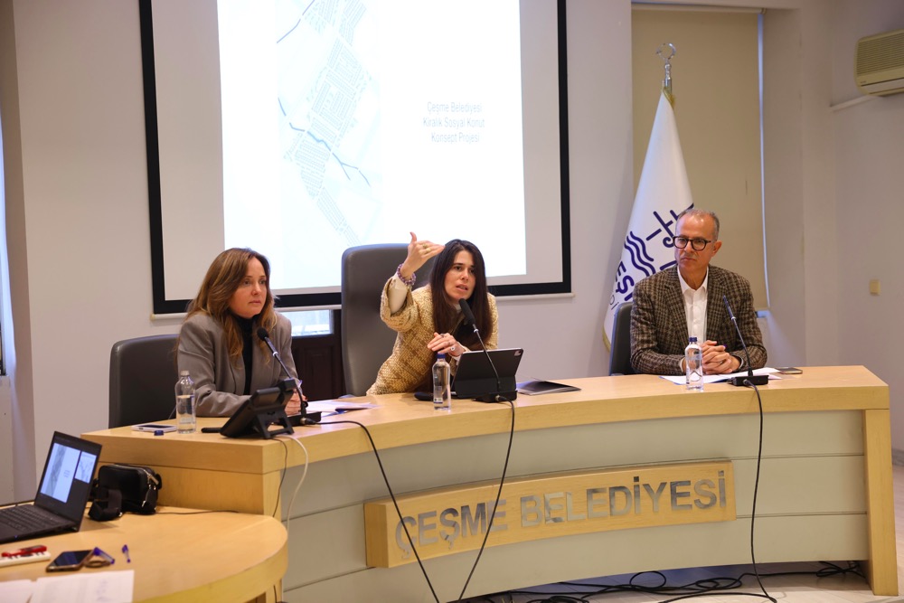 Olağanüstü meclis toplantısında söz alan Çeşme Belediye Başkanı Lâl Denizli, Çeşme Belediyesi Kiralık Sosyal Konut Projesi’nin mimari tasarımını, etaplama sürecini ve sürdürülebilirlik yaklaşımını detaylarıyla meclis üyelerine ve kamuoyuna sundu. Başkan Denizli; konut tipleri, yerleşim planı, yeşil alanlar ve sosyal donatılarla birlikte, projenin yalnızca bir konut üretimi değil, insan onuruna yakışır bir yaşam alanı hedeflediğini vurguladı.