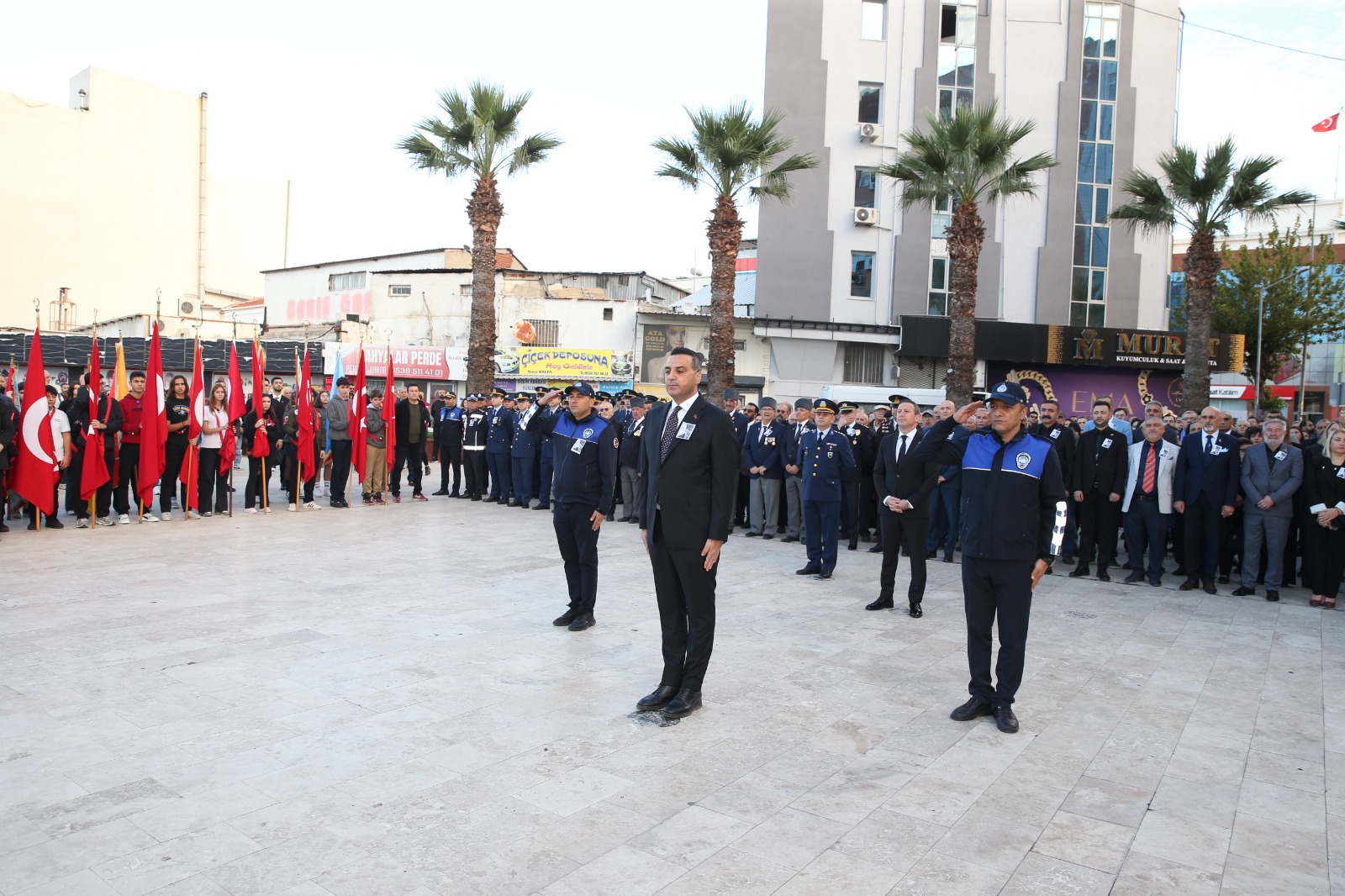 Törene Garnizon Komutanı Albay Cemal Taylan, Çiğli Kaymakamı Fatih Görmüş, Çiğli Belediye Başkanı Onur Emrah Yıldız, Çiğli İlçe Milli Eğitim Müdürü Şuayip Üner, Cumhuriyet Halk Partisi İlçe Başkanı Erkan Akar ve yönetimi, CHP Kadın ve Gençlik Kolları, belediye meclis üyeleri, mahalle muhtarları, çeşitli siyasi parti temsilcileri, Türkiye Muharip Gaziler Derneği, Atatürkçü Düşünce Derneği, sivil toplum kuruluşlarının temsilcileri ve çok sayıda vatandaş katıldı.