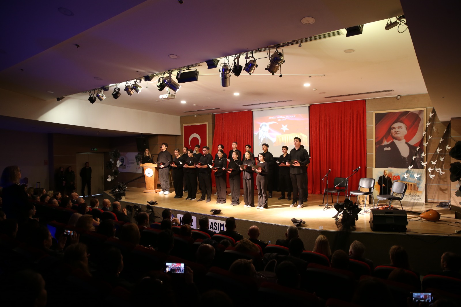 Rotary Mesleki ve Teknik Anadolu Lisesi öğrencilerinin sahnelediği programda Atatürk’ün yaşamı ve mücadelesini konu alan video gösterimi, “Önce Vatan” oratoryosu, vals ve zeybek dansları ile türkü dinletisi yer aldı. Programın devamında Kültür Bakanlığı İzmir Devlet Korosu sanatçıları, Atatürk’ün sevdiği şarkıları seslendirdi. Salonda yaşanan duygu dolu anlar, izleyiciler tarafından uzun süre alkışlandı.