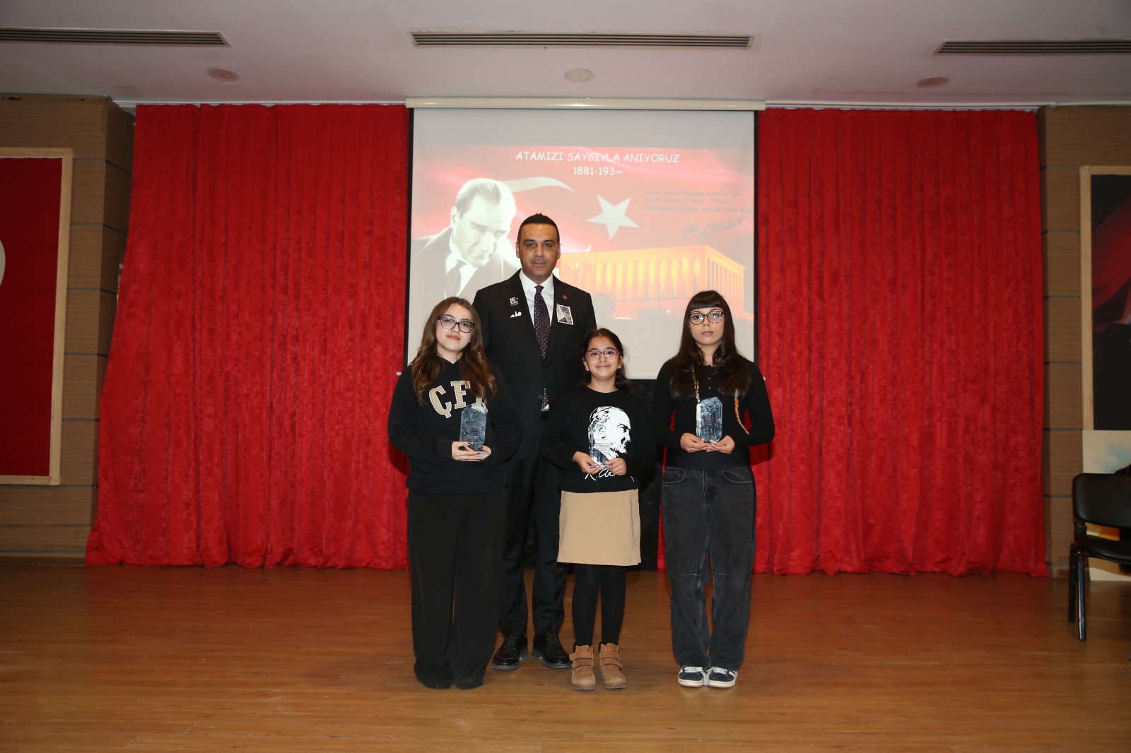 10 Kasım Atatürk’ü Anma Etkinlikleri kapsamında düzenlenen şiir yarışmasında dereceye giren öğrenciler, düzenlenen törenle ödüllerine kavuştu. Öğrencilere ödülleri; Garnizon Komutanı Albay Cemal Taylan, Çiğli Kaymakamı Fatih Görmüş ve Çiğli Belediye Başkanı Onur Emrah Yıldız tarafından takdim edildi. Tören sırasında öğrencilerin yaşadığı heyecan ve gurur, salondaki duygusal atmosferi daha da anlamlı kıldı.