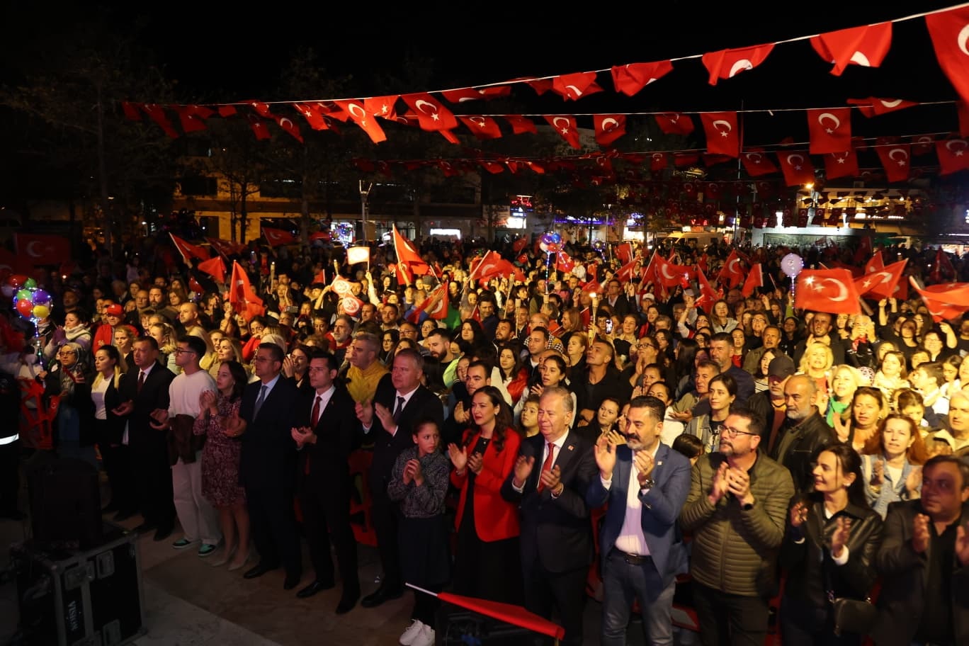 Cumhuriyet coşkusunu kalplerinde yaşayan Urlalılar, iki gün boyunca bayramı gururla ve sevinçle kutladı. Genç yaşlı demeden elinde Türk bayraklarıyla 12 Eylül Stadını dolduran Urlalılar Cumhuriyetin ilelebet payidar kalacağını bir kez daha kanıtladı.