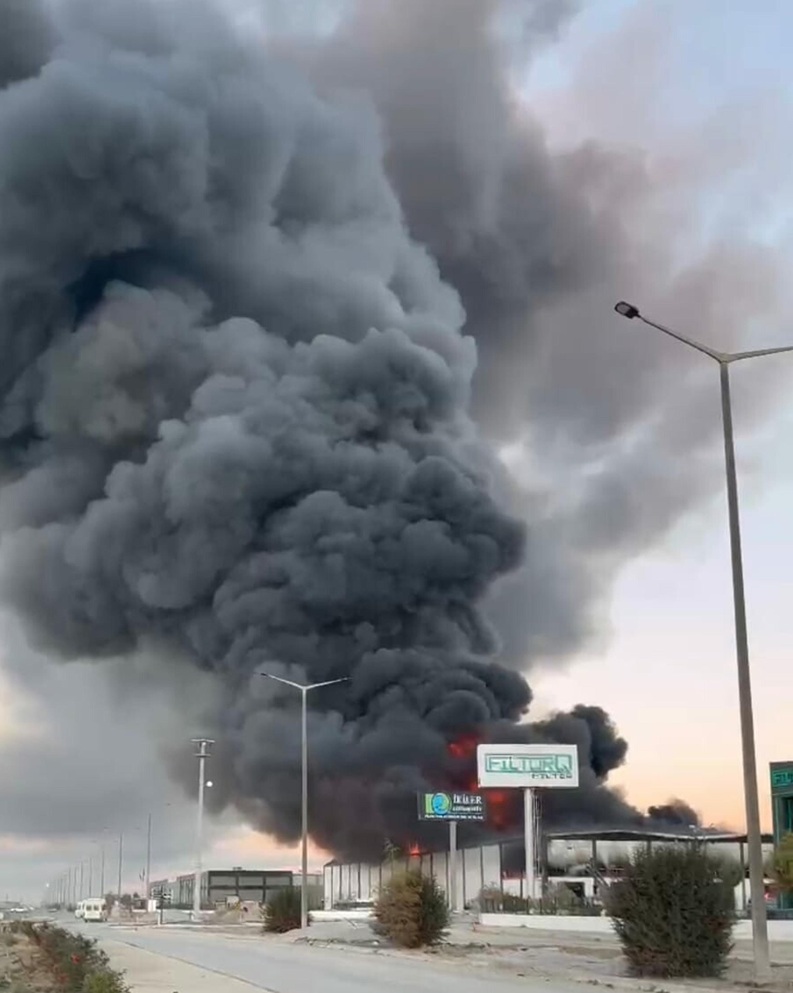 Fabrikadan yükselen simsiyah dumanlar ilçenin pek çok noktasından görünürken, itfaiye ekipleri yangını büyük ölçüde kontrol altına aldı.