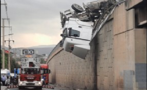 TIR'ın kupası viyadüğe asılı kalırken, şoför Öngen ise yaralandı.