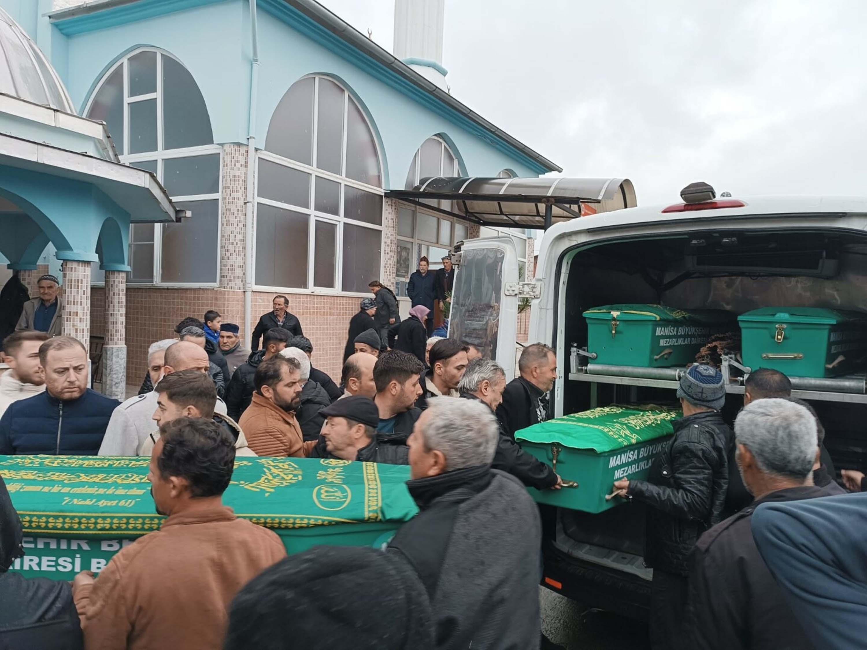 Öldürülen Sariye Nur Coşkun (22), Musa Girgin (51), Fatma Girgin (43) ve Yusuf Can Girgin (13) için Turgutlu'daki Kabaçınar Camii önünde cenaze töreni düzenlendi.