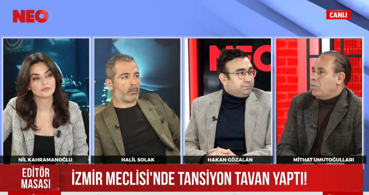 EGEPOSTASI- NEO TV’de yayınlanan ve moderatörlüğünü Nil Kahramanoğlu’nun yaptığı Editör Masası’nda, İzmir ve Türkiye siyasetinin sıcak konu başlıkları masaya yatırıldı. Cumhurbaşkanı Erdoğan’ın imzasıyla yapılan kabine değişikliğinden İzmir Büyükşehir Belediye Başkanı Cemil Tugay’ın açıklamalarına kadar konuşulan programa NEO TV Yönetim Kurulu Başkanı Mithat Umutoğulları, NEO TV Genel Müdürü Halil Solak ve NEO TV Genel Yayın Yönetmeni Hakan Gözalan konuk oldu.