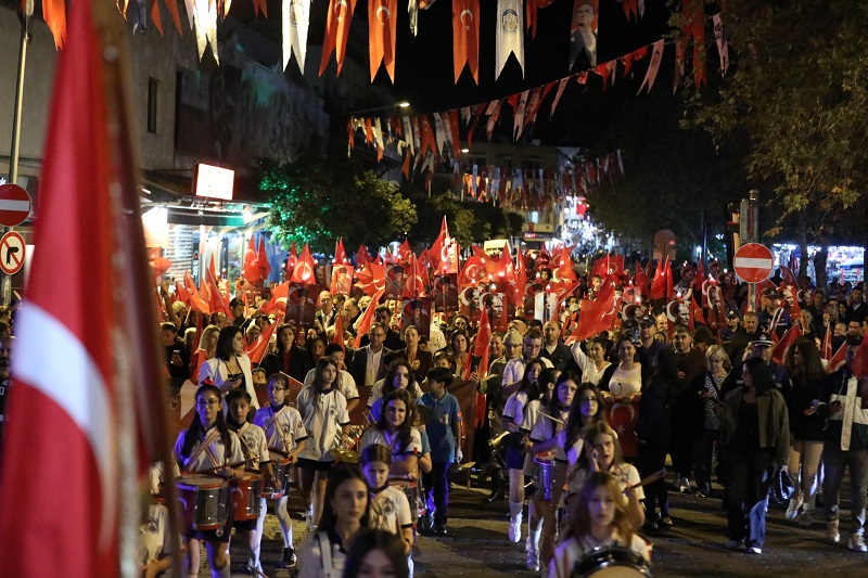 Fener Alayı için saat 19.23’te Atatürk Anıtı önünde toplanan Efes Selçuklular; bayraklar ve meşalelerle marşlar eşliğinde Cumhuriyet coşkusunu Efes Selçuk sokaklarına taşıdı.