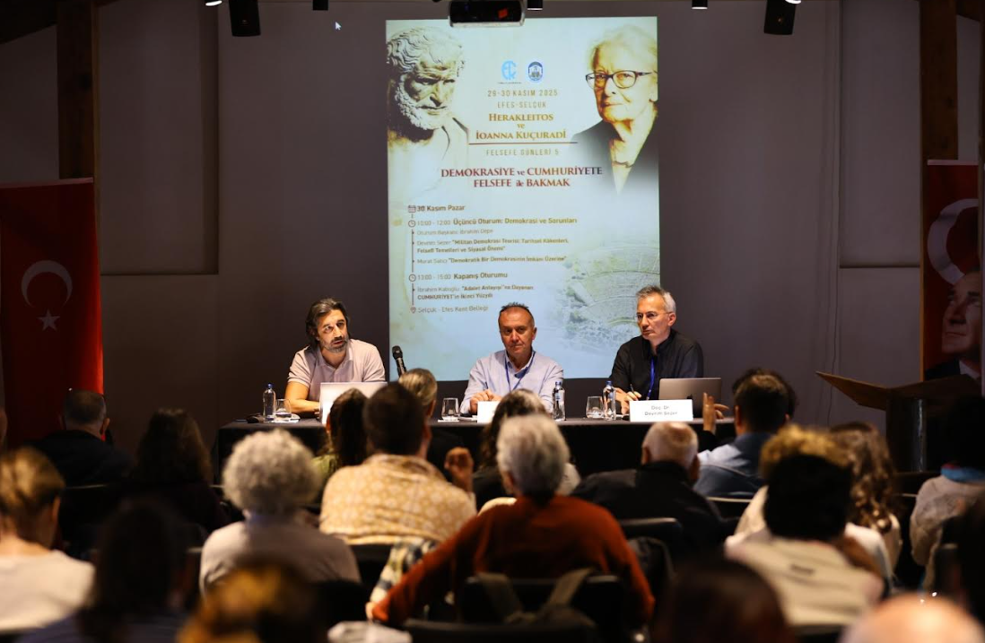 Doç. Dr. Murat Satıcı ise; “İki gündür Efes Selçuk Belediyesi’nin düzenlediği Felsefe Günleri’ndeyiz. Felsefecilerle halkı buluşturan, demokrasi ve Cumhuriyet üzerine verimli tartışmalar yaptığımız önemli bir etkinlik oldu. Sorunları ve çözüm yollarını paylaşmak için güzel bir fırsattı. Emeği geçen herkese teşekkür ederiz” dedi.