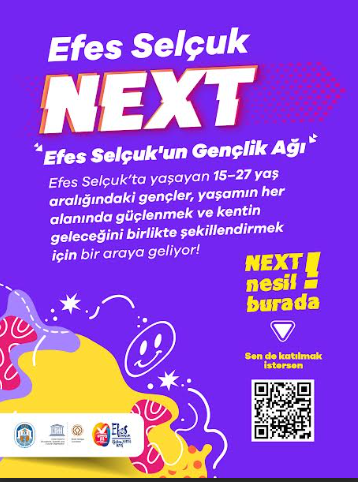 Efes Selçuk’ta yaşayan veya kentte eğitim gören 15-27 yaş aralığındaki gençleri kapsayan Efes Selçuk Next Gençlik Ağı, gençlerin fikirleriyle kent yönetimine katılımını artırmayı ve onların sosyal, kültürel, ekonomik alanlarda güçlenmesini hedefliyor.