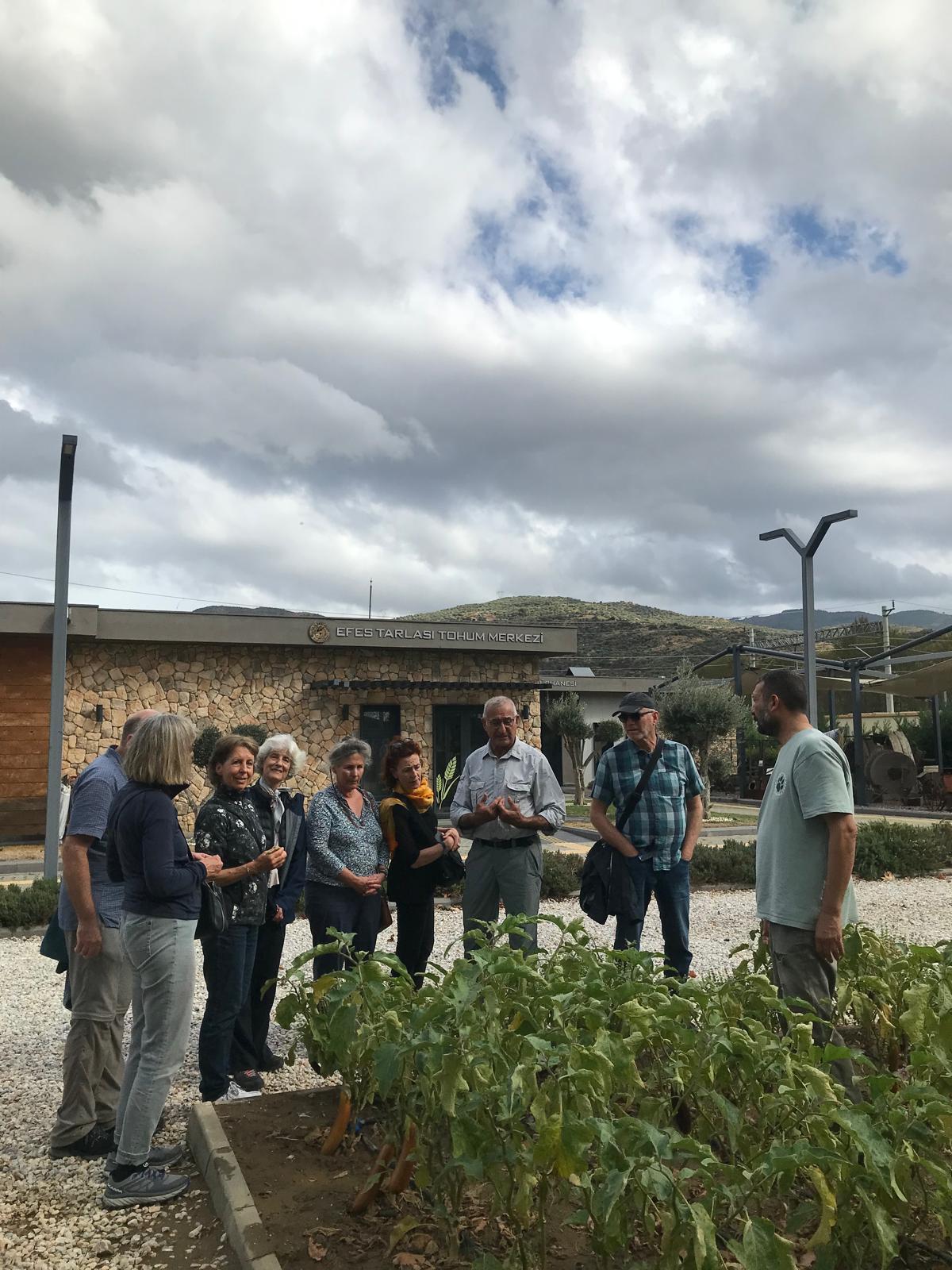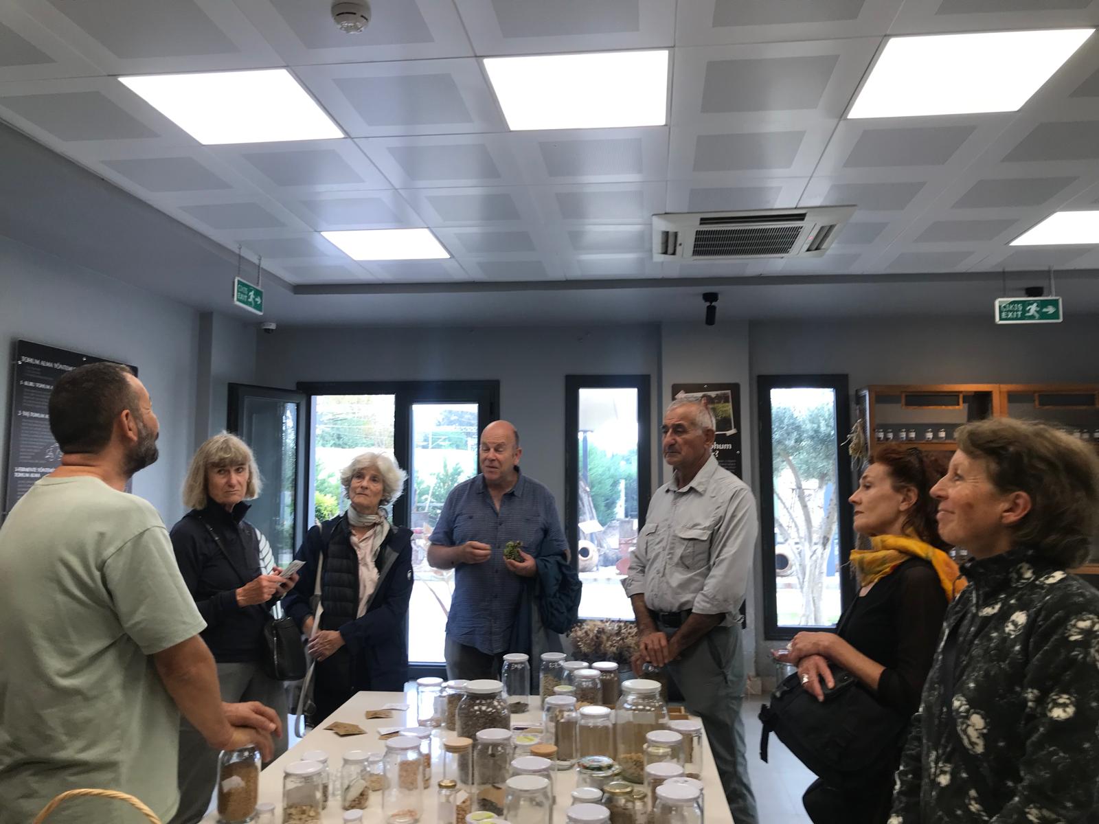 Toprak Okulu’nda gerçekleştirilen eğitimler hakkında bilgi alan ziyaretçiler Tohum Merkezi’nde yerel tohum çeşitlerini inceledi. Ziyaretçiler ayrıca, kendi ülkelerindeki yerel tohum çalışmalarıyla ilgili deneyimlerini de paylaştı.