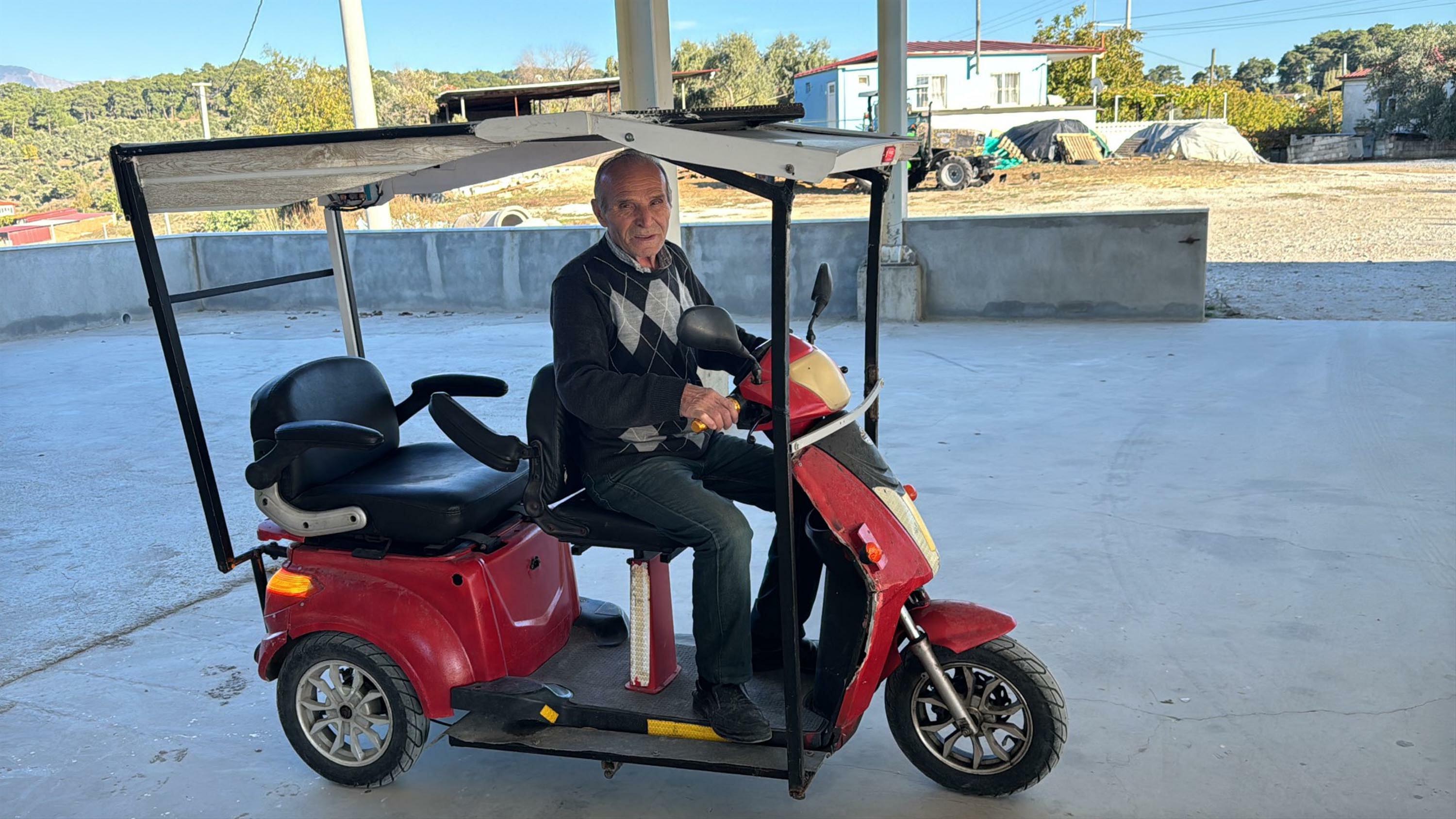 Yatağan'ın Yenikarakuyu Mahallesi’nde yaşayan Türkiye Kömür İşletmeleri'nden (TKİ) emekli Mevlüt Sarı, hurdacıdan satın aldığı 3 tekerlekli akülü bisikletini çalışır hale getirmek için harekete geçti. İnternetten videolar izlediğini belirten Sarı, 100 vat gücünde bir güneş panelini bisikletin üst kısmına monte etti.