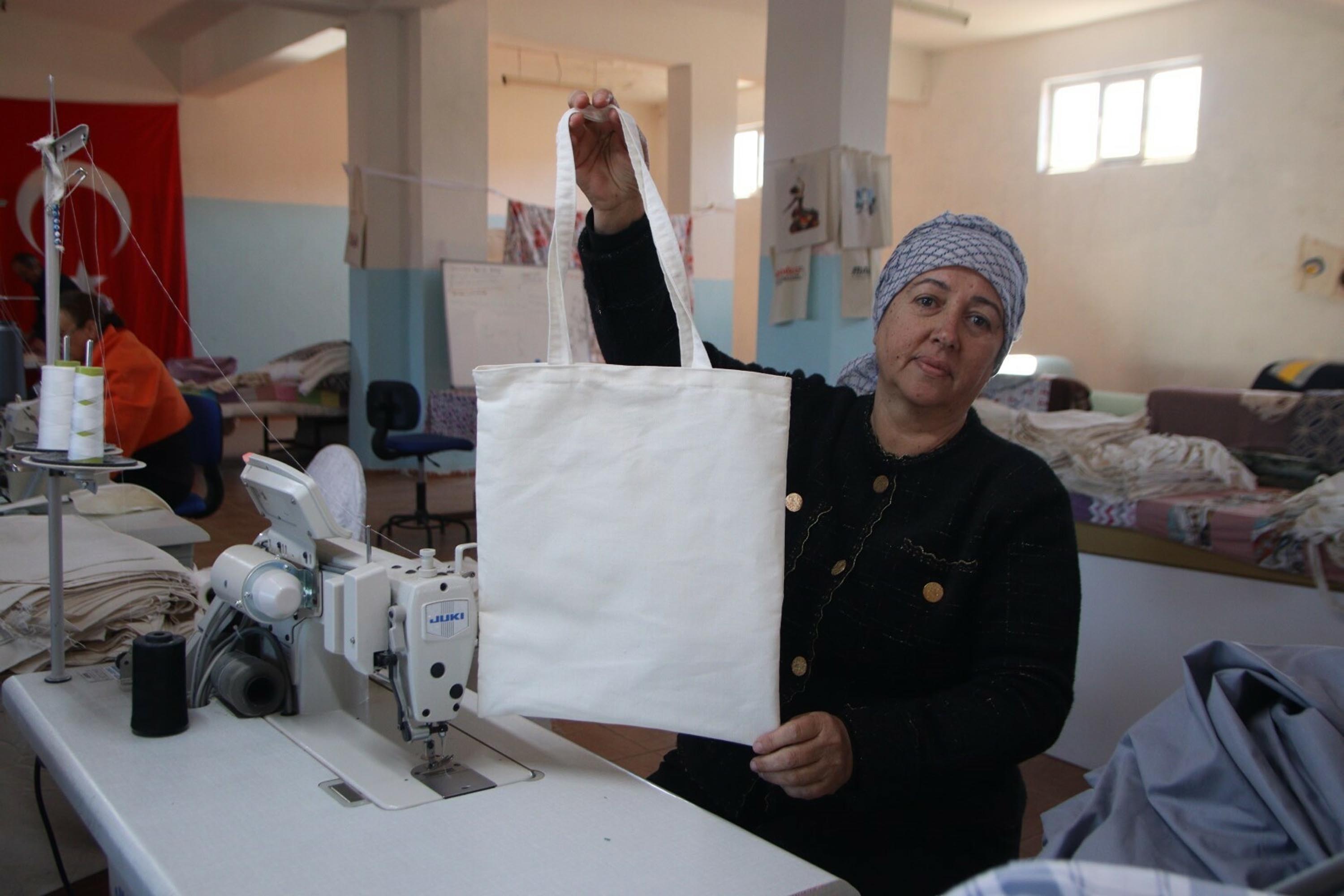 Figen Özsoy, "Çalıştım, emekli oldum. Ondan sonra eşimle birlikte böyle bir işe başladık. Önce evde bez çantalar dikmeye başladık. KOSGEB'den aldığımız destekle işimizi geliştirdik ve büyüttük. Yurt içinden ve yurt dışından siparişler almaya başladık. Daha sonra bir atölye kurduk. Kadınlar ile birlikte üretim yapıyoruz ve birbirimize destek oluyoruz. Nevresim takımları, kalemlikler ve bez çantalar üretiyoruz. Daha büyük pazarlara açılmak istiyoruz. Daha çok kadına destek olmak, birlikte üretmek istiyoruz. Burası bir kadın dayanışma merkezi. Hem stres atıyoruz hem de üretiyoruz. Herkesi buraya bekliyoruz" dedi. (DHA)