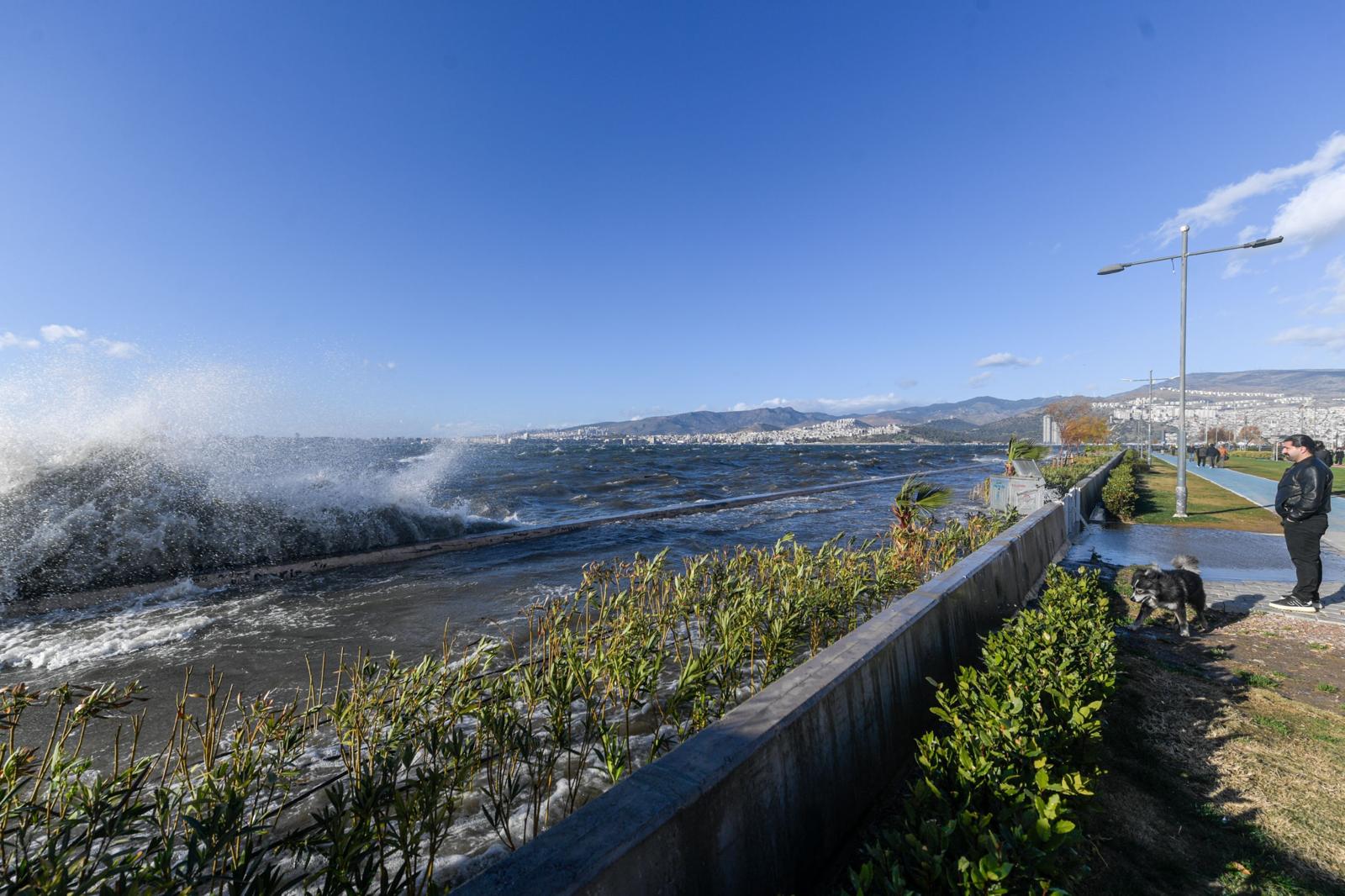 İzmir’de gece saatlerinden itibaren başlayan ve sabah saatlerinde etkisini artıran kuvvetli sağanak yağış, öğleden sonra yerini şiddetli fırtınaya bırakırken İzmir Körfezi’nde deniz seviyesi yükseldi. İzmir Büyükşehir Belediyesi Fen İşleri Dairesi Başkanlığı ekipleri, geceden bu yana yürüttükleri kontroller doğrultusunda Kordon’daki geçici fırtına duvarında gerekli tüm önlemleri aldı.