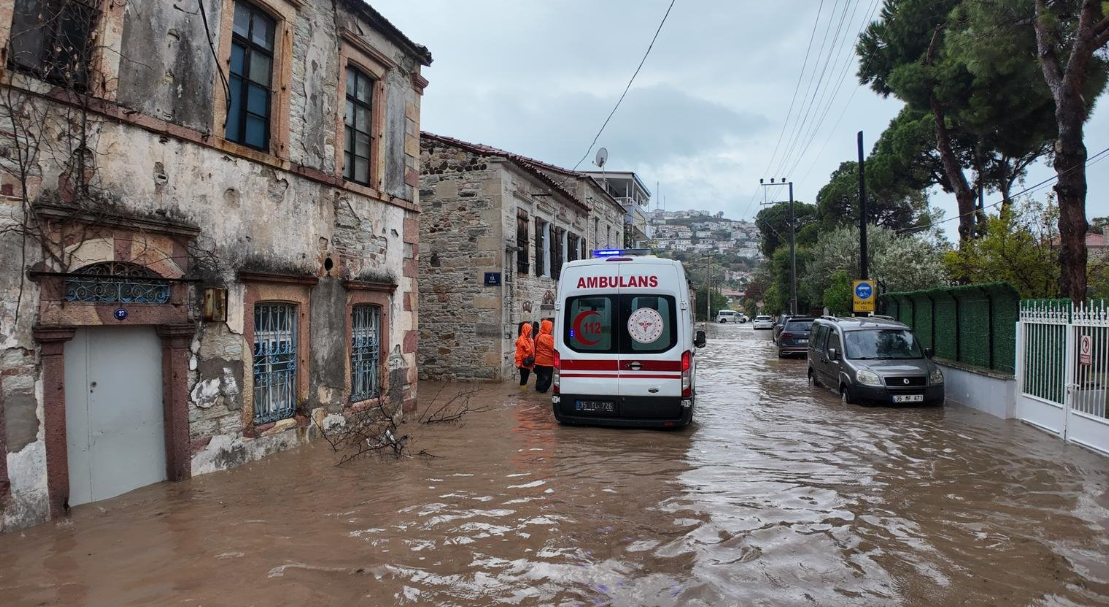 İzmir’in Foça ilçesinde meydana gelen aşırı yağış nedeniyle yaşam olumsuz etkilendi. İlçede metrekareye kısa süre içinde yaklaşık 154.4 kg yağış düştü. Deniz seviyesinin de yükselmesiyle birlikte su baskınları yaşandı. İZSU Genel Müdürlüğü ve itfaiye ekipleri ihbarlara müdahale etmek için bölgeye sevk edilen takviye ekiplerle birlikte seferber oldu. İZSU Genel Müdürü Gürkan Erdoğan ve İtfaiye Dairesi Başkanı Yaşar Korkmaz bölgeye giderek Foça Belediye Başkanı Saniye Bora Fıçı ile birlikte ekiplerin çalışmalarını yönlendirdi. İzmir Büyükşehir Belediyesi 192 araç ve 350 personelle bölgede yaşamı normale döndürmek için kesintisiz çalışıyor. Ekipler su tahliye çalışmalarının yanı sıra bölgedeki vatandaşların da yardımına koşuyor. Başta İZSU ve itfaiye ekiplerinin yürüttüğü çalışmalara İzmir Büyükşehir Belediyesi’ne bağlı İklim Değişikliği ve Sıfır Atık Dairesi, Sosyal Hizmetler Dairesi, Muhtarlık İşleri Dairesi, Fen İşleri ve Veteriner İşleri Dairesi Başkanlığı destek veriyor.