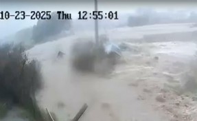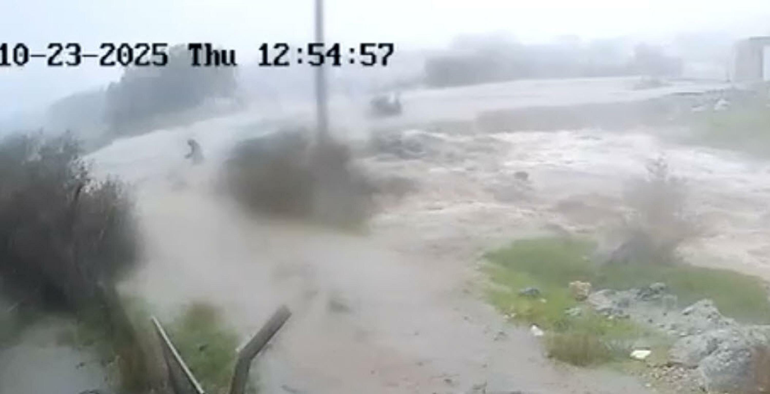 Görüntülerde bir ara sel sularının hızlanmasıyla Kaptanoğlu'nun da daha fazla dayanamayıp suda sürüklenip, gözden kaybolduğu görülüyor.