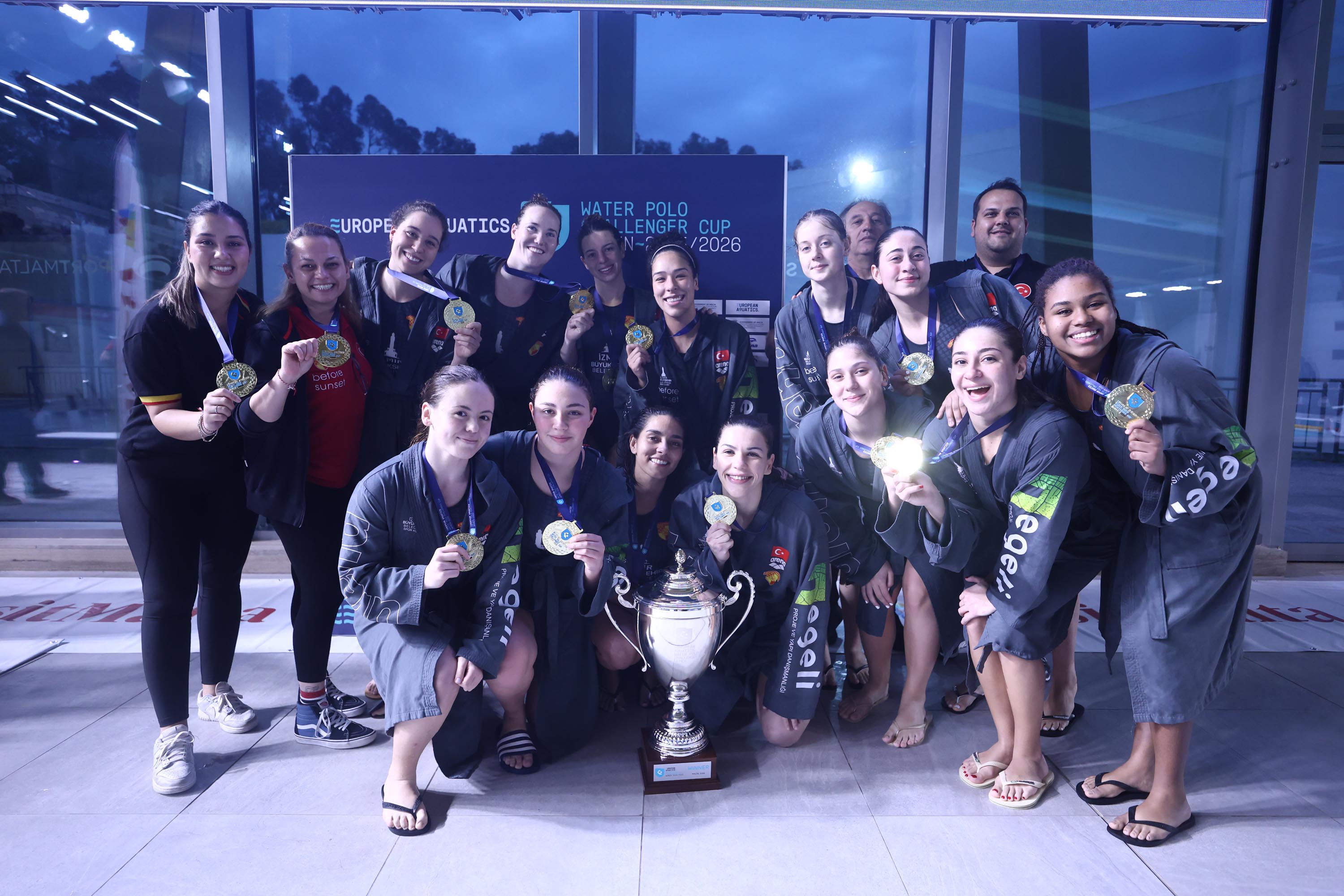 İzmir Büyükşehir Belediyespor çatısı altında 2024 ve 2025'te Challenger Cup'ta şampiyon olarak Avrupa'da ilki başaran kadın sutopu takımı bu sezon olimpik branşlara büyük yatırım yapan Göztepe'nin bünyesine geçtikten sonra da kupa koleksiyonunu sürdürdü. Göz-Göz'ün sutopçuları kulübe tarihinin Avrupa'da ilk, İzmir'e de art arda üçüncü kupasını getirdi. İzmirli kızlar maçın ardından Malta Cottonera Indoor Havuzu'nda ay-yıldızlı bayrağımızı açtı.
