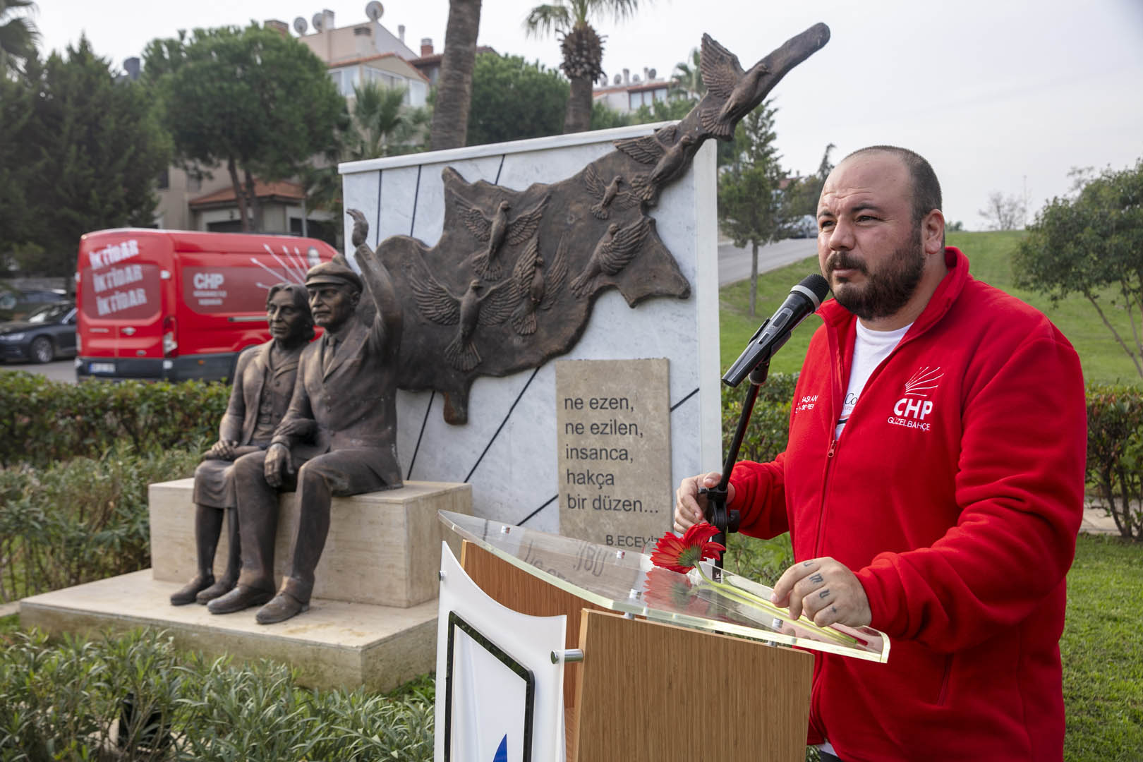Ecevit’in ne yapmaya çalıştığını olgun yaşa geldiğimizde daha doğru anladığınız liderlerden birisi olduğunu söyleyen CHP Güzelbahçe İlçe BaşkanıDevrim Seyrek; “Aslında eksiğimiz de bu koşullara bakmadan, hangi lider olursa olsun onu anlamak yerine ona muhalefet yapmayı doğru buluyoruz.Bu bizim içimizde kronikleşmiş bir durum maalesef. Cumhuriyet Halk Partisi Genel Başkanına, Batı cepheleri komutanına, Milli Şefin karşısına aday olmuş İsmet İnönü‘ye rakip oluyorsunuz.İlk turda saltçoğunluk sağlanamayıncaikinci turda o Milli şef, Atatürk’ün en yakın silah arkadaşı batı cepheleri komutanı sizin lehinize çekiliyor ve Genel Başkan oluyorsunuz.Bu başlı başına konuşulacak bir olay zaten.Ancak Kuzey Kıbrıs Türk Cumhuriyeti’nin temelini atan da bugünkü Kıbrıs Türklerinin de bağımsızlığını hatta Güney Kıbrıs’taki rumların sorununu da çözen bağımsızlığının önderi olmuş adam olarak karşınıza çıkıyor. Sonra gündüzleri, geceleri bütün köylerde kahvelerde miting yaparak karşımıza çıkıyor.Bütün bunlar gibi kendi siyaseti açısından bizim ona anlayacağımız tarafından anlaşılabilir durum ama ben başka bir şeye dikkat çekmek istiyorum. Bülent Ecevit birincisi şairdi bu bugün dinlediğimiz birçok şarkının da sözlerinin yazarıydı.İkincisi ve önemlisi Bülent Ecevit sadece Rahşan’a değil memleketine, milletine deaşıktı. Bülent Ecevit hem Cumhuriyet’e hem Atatürk’e hem de milletine sevdalıydı şimdi yan yanalar buradaki heykelde olduğu gibi zaten hiç de ayrılmadılar ruhları şad olsun saygı ve sevgiyle anıyoruz” diye konuştu.