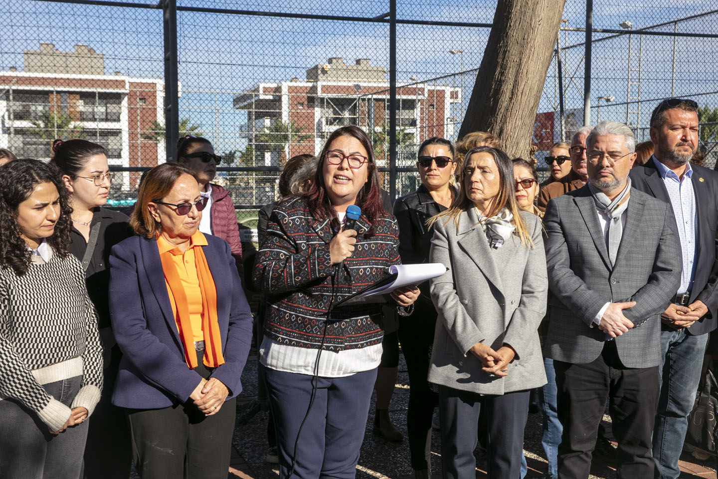 Güzelbahçe Ayşe Mayda Spor Tesisleri Kadın ve Aile Hizmetleri Müdürlüğü’nde yapılan basın açıklamasına Güzelbahçe Belediye Başkan Vekili Ali Dönmez, Güzelbahçe Belediye Başkanı Eşi Nermin Günay, CHP Güzelbahçe İlçe yöneticileri, Meclis üyeleri, sivil toplum kuruluşları temsilcileri ve çok sayıda kadın katıldı.