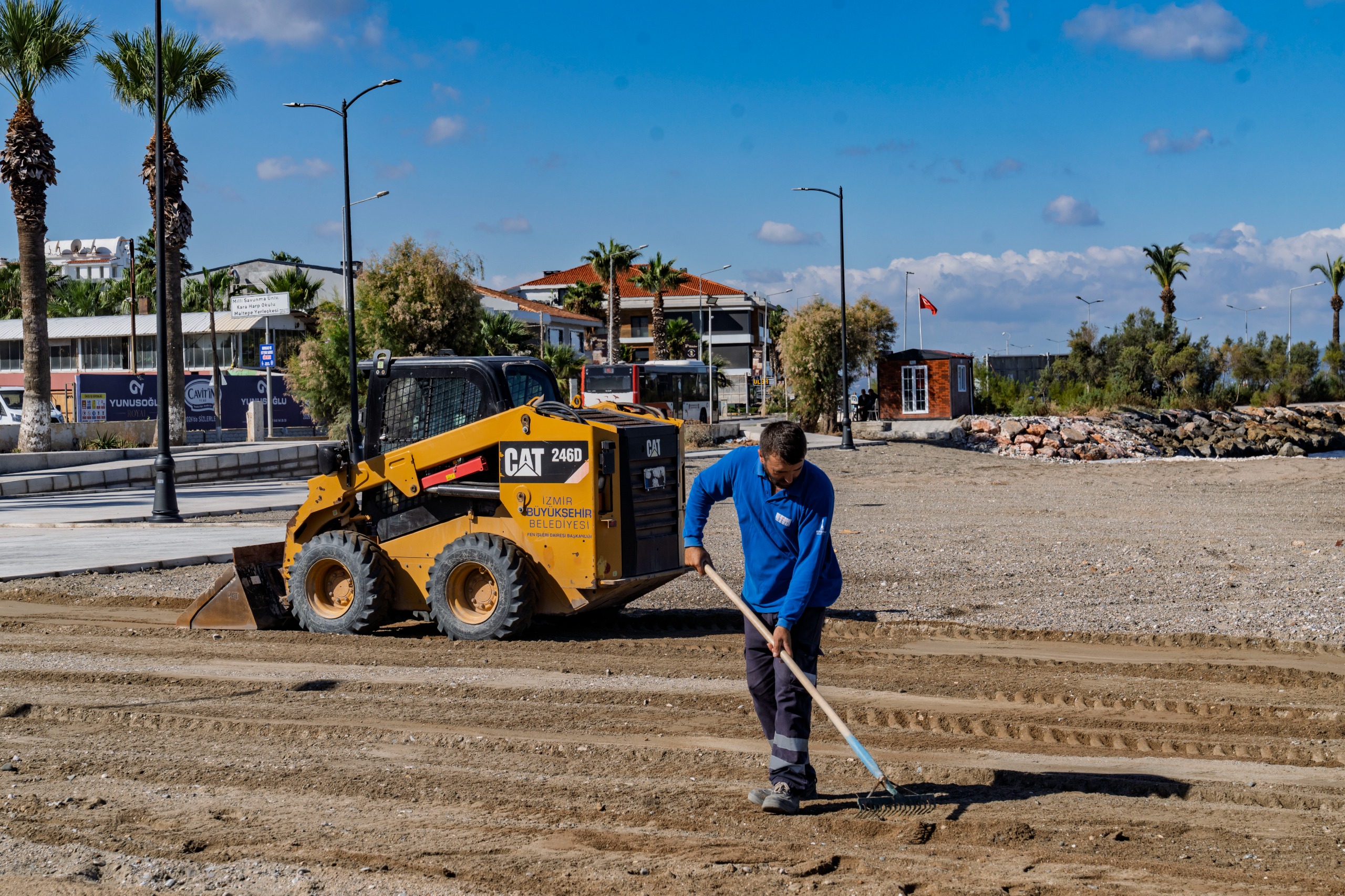 İzmir Büyükşehir Belediyesi Fen İşleri Dairesi Başkanlığı Şantiye Şefi Volkan Keskin, 2 bin metrekarelik sosyal tesiste bin 200 metrekarelik sert zemin çalışmalarını tamamladıklarını bildirdi. Keskin, “Tuvalet, duş, kafeterya ve oturma alanlarında imalatlar devam edecek. Kıyıda düzenleme çalışmalarını yaptık. Plajı İzmir halkının denize girebileceği hale getirdik. Burada daha önce atıl bir işletme vardı. Yıkımını yaptık. Halkımızın burada çayını, kahvesini içip denize girebileceği güzel bir alanı kentimize kazandırıyoruz” dedi. Tesisteki sosyal hizmet alanlarının altyapı çalışmalarının devam ettiğini belirten Yapı İşleri Dairesi Başkanlığı Elektrik Elektronik Mühendisi Yılmaz Güzel ise “Alanın aydınlatması ve elektrik tesisatı ile ilgili çalışmalar yürütüyoruz. 6 aydınlatma direğiyle tesisin aydınlatmasını sağlıyoruz” diye konuştu.