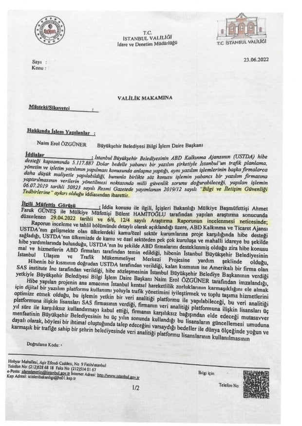 Cumhuriyet Halk Partisi (CHP) Grup Başkanvekili Gökhan Günaydın, sosyal medya hesabından yaptığı paylaşımda, 23 Haziran 2022 tarihli ve Yerlikaya imzalı kararı kamuoyuna sundu. Belgeye göre, İBB Bilgi İşlem Dairesi’ne ilişkin yürütülen soruşturma kapsamında, “zafiyet tespit edilmediği için işlem yapılmasına yer olmadığı” yönünde bir değerlendirme yapıldı.