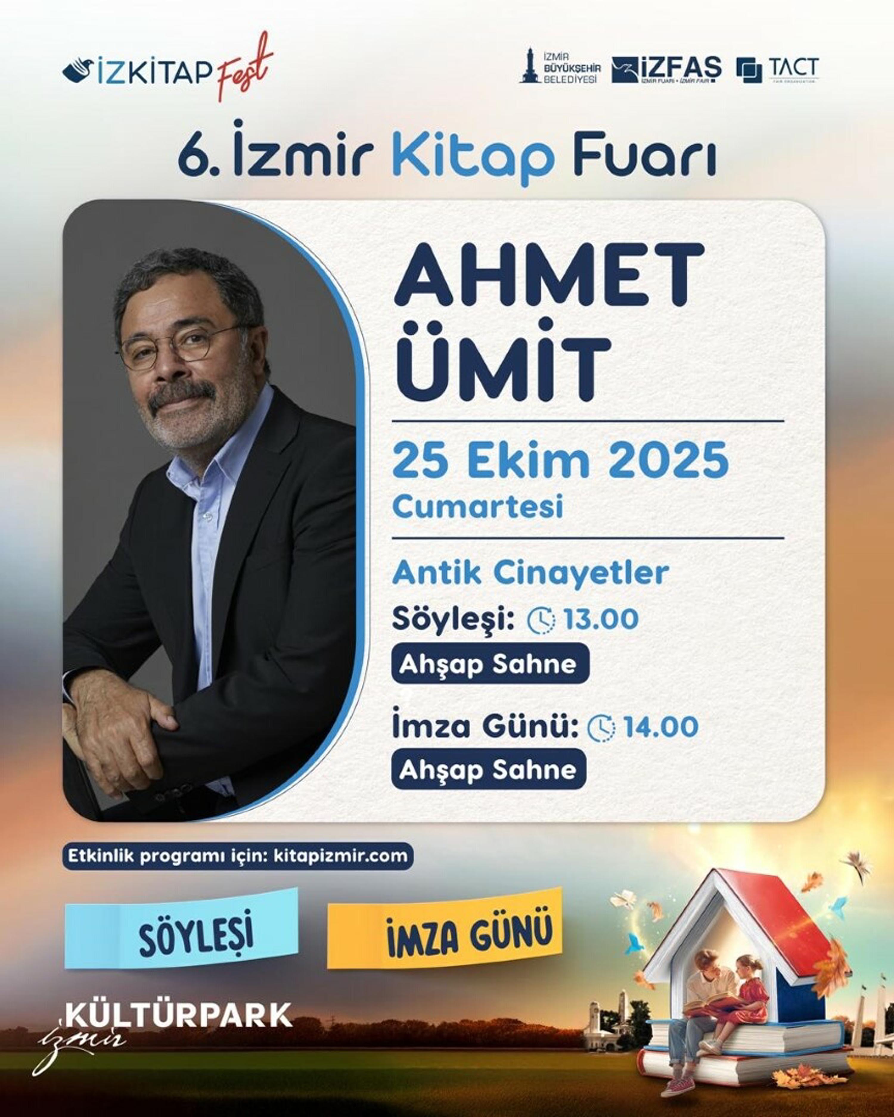 fİzmir Büyükşehir Belediyesi'nin ev sahipliğinde, İZFAŞ ve TACT Fuarcılık iş birliğiyle Kültürpark'ta düzenlenen İZKİTAP - 6. İzmir Kitap Fuarı'nda hafta sonu boyunca Ahmet Ümit, Can Yılmaz, Hidayet Karakuş, Nasuh Mahruki, Saygı Öztürk, Mavisel Yener, Mustafa Balbay, Piraye, Şükrü Erbaş, Sinan Meydan, İlyas Salman, Umut Sarıkaya, Yılmaz Aslantürk, Zafer Algöz, Zeynep Altıok gibi isimler, okurları için kitaplarını imzalayacak.