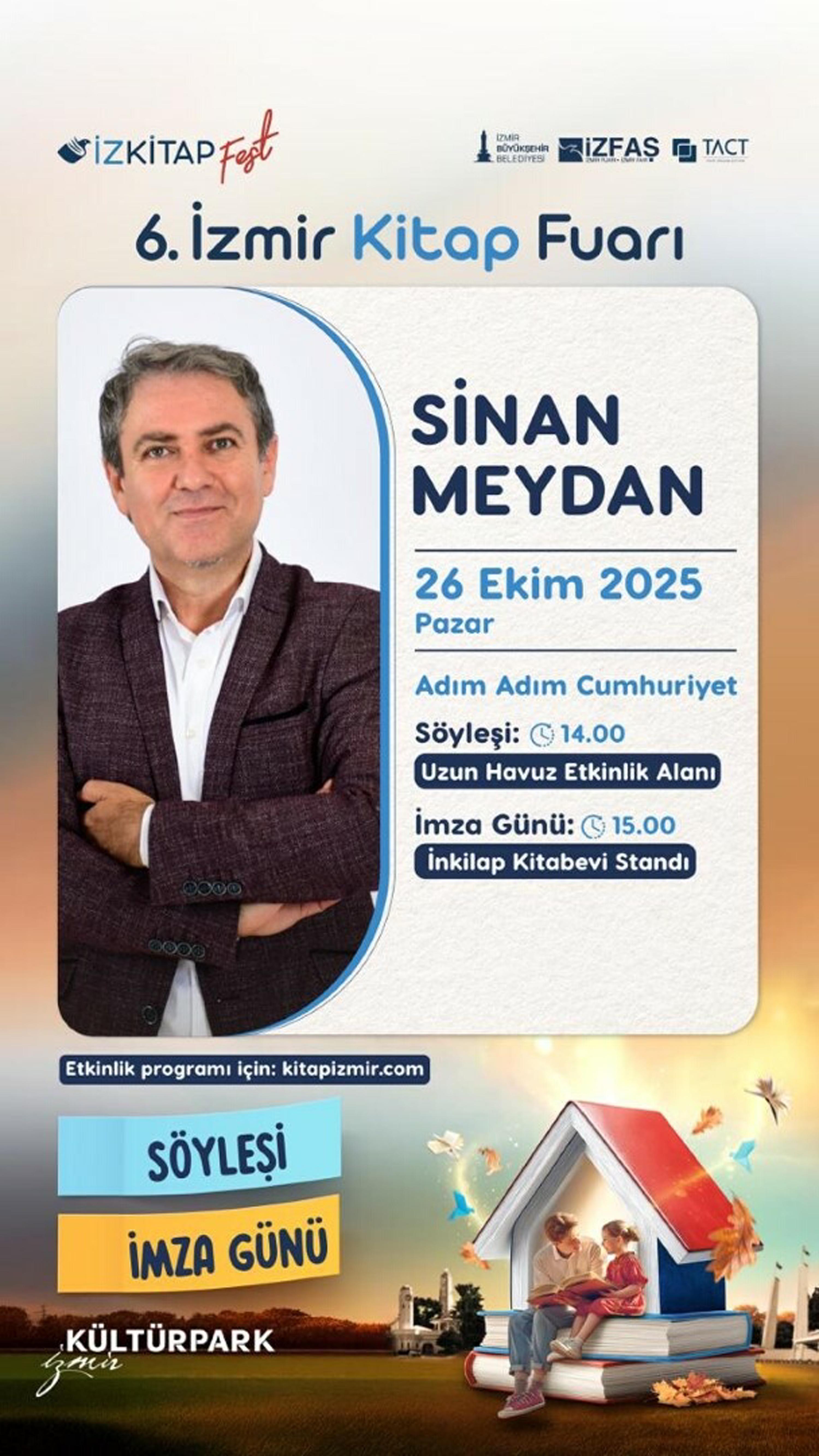 Pazar günü de yazar Piraye, saat 14.00'te İzmir Sanat'ta gerçekleşecek söyleşi ile okurlarıyla buluşacak. Aynı saatte, tarihçi, yazar Sinan Meydan, 'Adım Adım Cumhuriyet' başlıklı söyleşisiyle Uzun Havuz Etkinlik Alanı'nda olacak. Türkiye Yazarlar Sendikası (TYS) İzmir Temsilciliği'nin düzenlediği 'İtirazım Var! Şiir Dinletisi' de yine 14.00'te İsmet İnönü Sanat Merkezi'nde gerçekleşecek. Gazeteci yazar Yavuz Oğhan da 26 Ekim Pazar günü saat 14.00'te, tutuklu İstanbul Büyükşehir Belediye Başkanı Ekrem İmamoğlu'nun yaşamı ve mücadelesini kaleme aldığı 'Millete Emanet' kitabını okurları için imzalayacak.