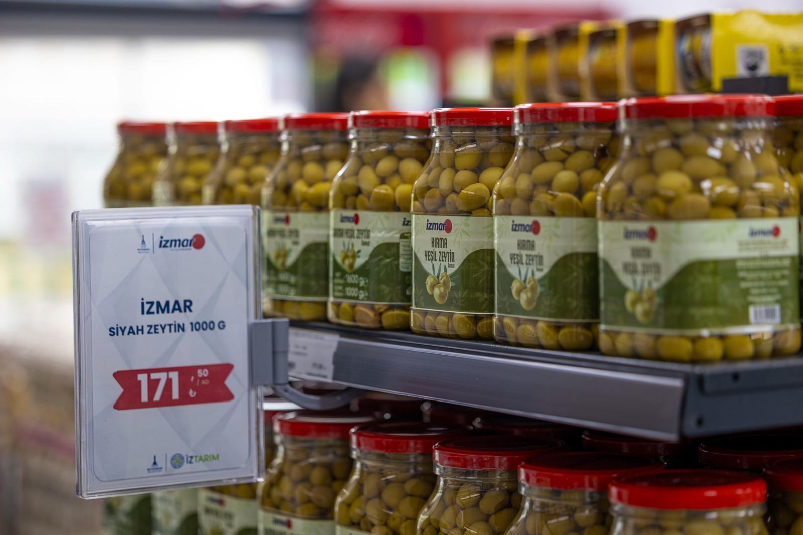 Halka uygun fiyatlı ve kaliteli ürünleri ulaştırmak için çalışmalarına devam eden İZTARIM ekibi, sofraların temel ihtiyaçlarından bir tanesini daha uygun fiyatla İzmirliler ile buluşturdu. Akhisarlı zeytin üreticilerinden alınarak hazırlanan İZMAR kırma yeşil zeytin ilk kez satışa sunuldu. Piyasada kilosu 400 liraya kadar ulaşan zeytinin kilosu 171 lira 50 kuruştan raflarda yerini aldı. Kısa sürede İZMAR siyah zeytin de aynı fiyattan mağazalarda satışa sunulacak.