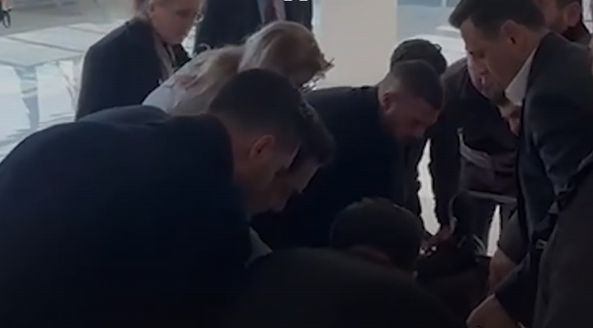 Bayılan yurttaş, CHP İstanbul İl Başkanı Özgür Çelik ve partililer tarafından taşındı.