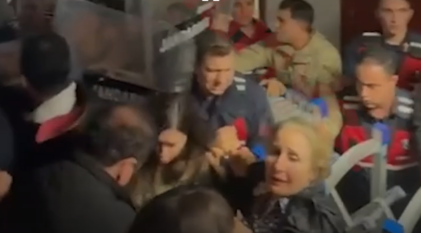 Jandarma duruşmanın yapıldığı salona girmek isteyenleri kalkanlar ve bariyerlerle uzaklaştırdı. Arbedede bayılan yaşlı yurttaşlar oldu.