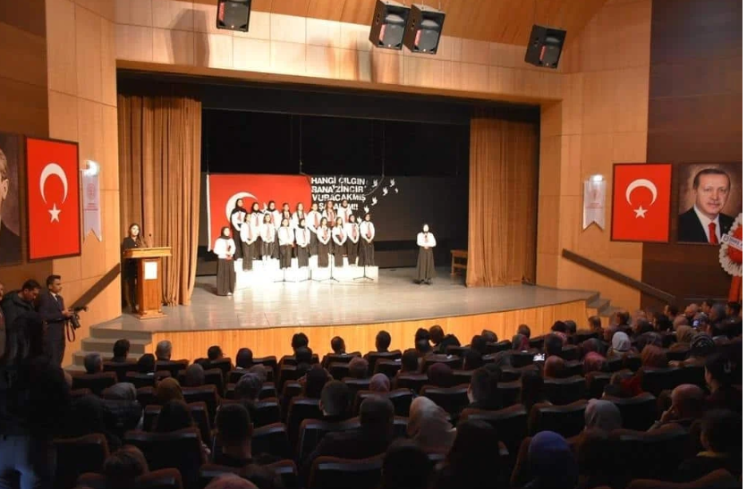 Karaman'da Cahit Zarifoğlu İmam Hatip Ortaokulu öğretmen ve öğrencileri tarafından, ‘12 Mart İstiklal Marşı’nın Kabulü ve Mehmet Akif Ersoy’u Anma’ etkinlikleri yapıldı. Sahneye çıkardıkları çocuklara İstiklal Marşı’nı Arapça okuttular.