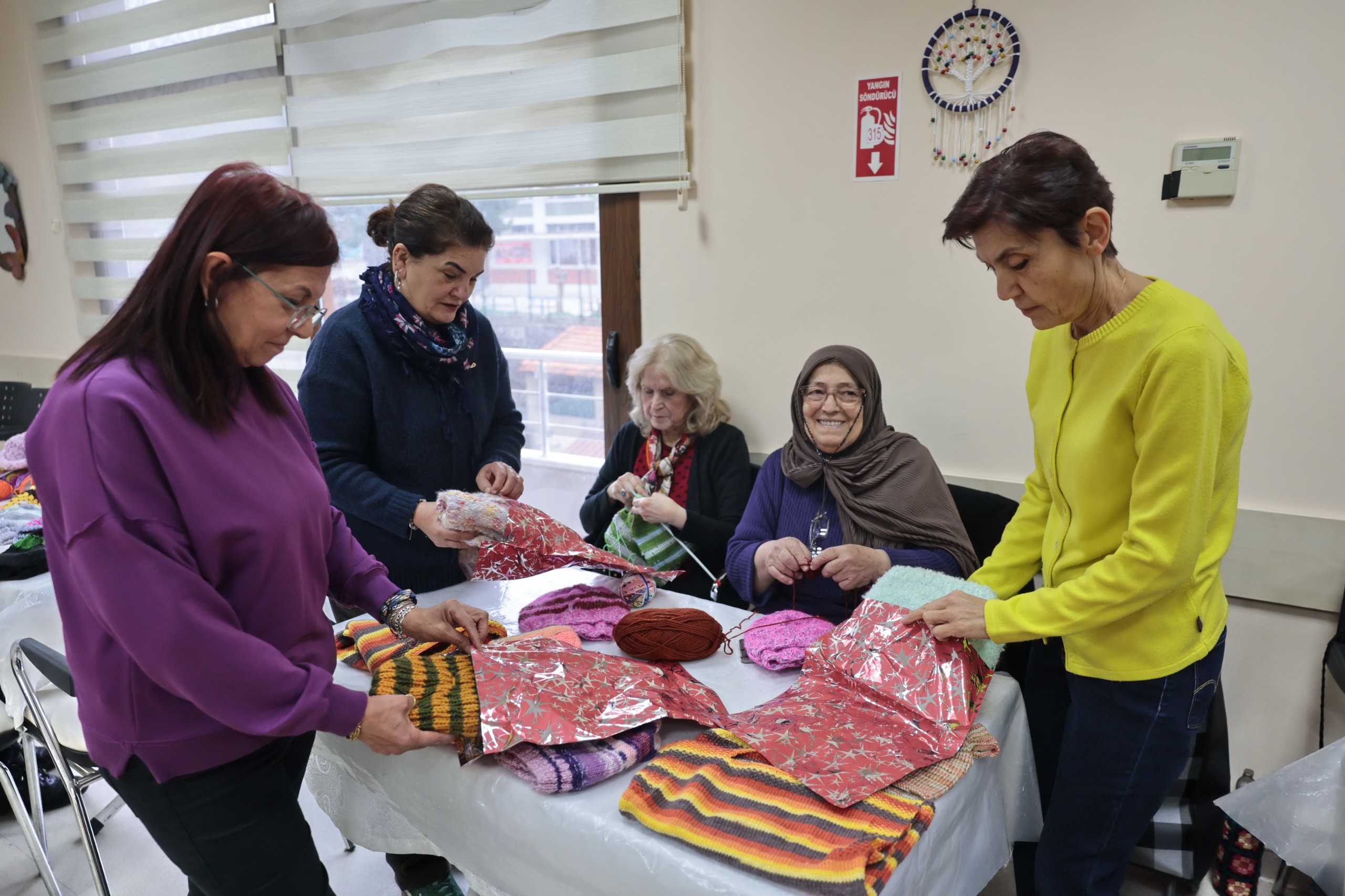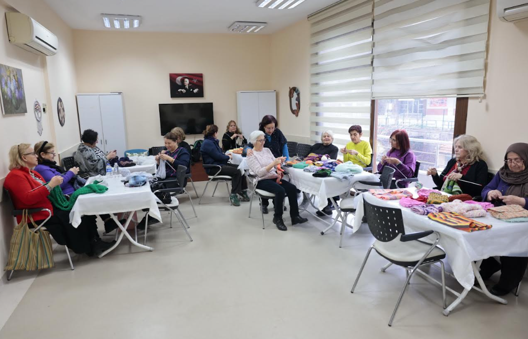 Ziya Zişan Saadet Aytulun Kardeşler İleri Yaş Sağlıklı Yaşam Merkezi, örgü sınıfı kursiyerlerinin oluşturduğu sevgi ağının devamlılığı ve büyümesi için örgü ipi ve yün bağışı yapmak isteyenler, merkezin (0232) 445 43 20 numaralı telefonunu arayarak detaylı bilgi alabiliyor.