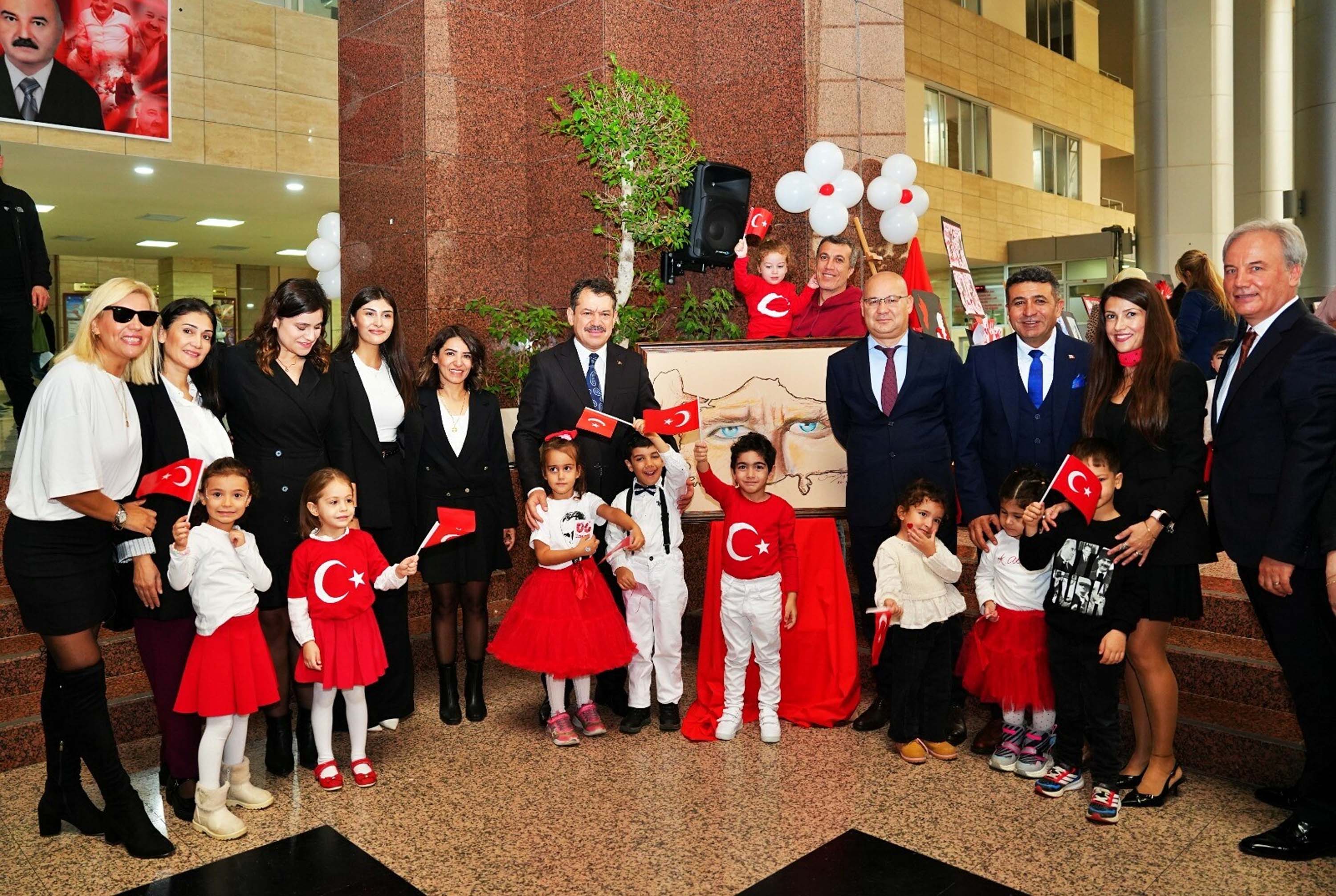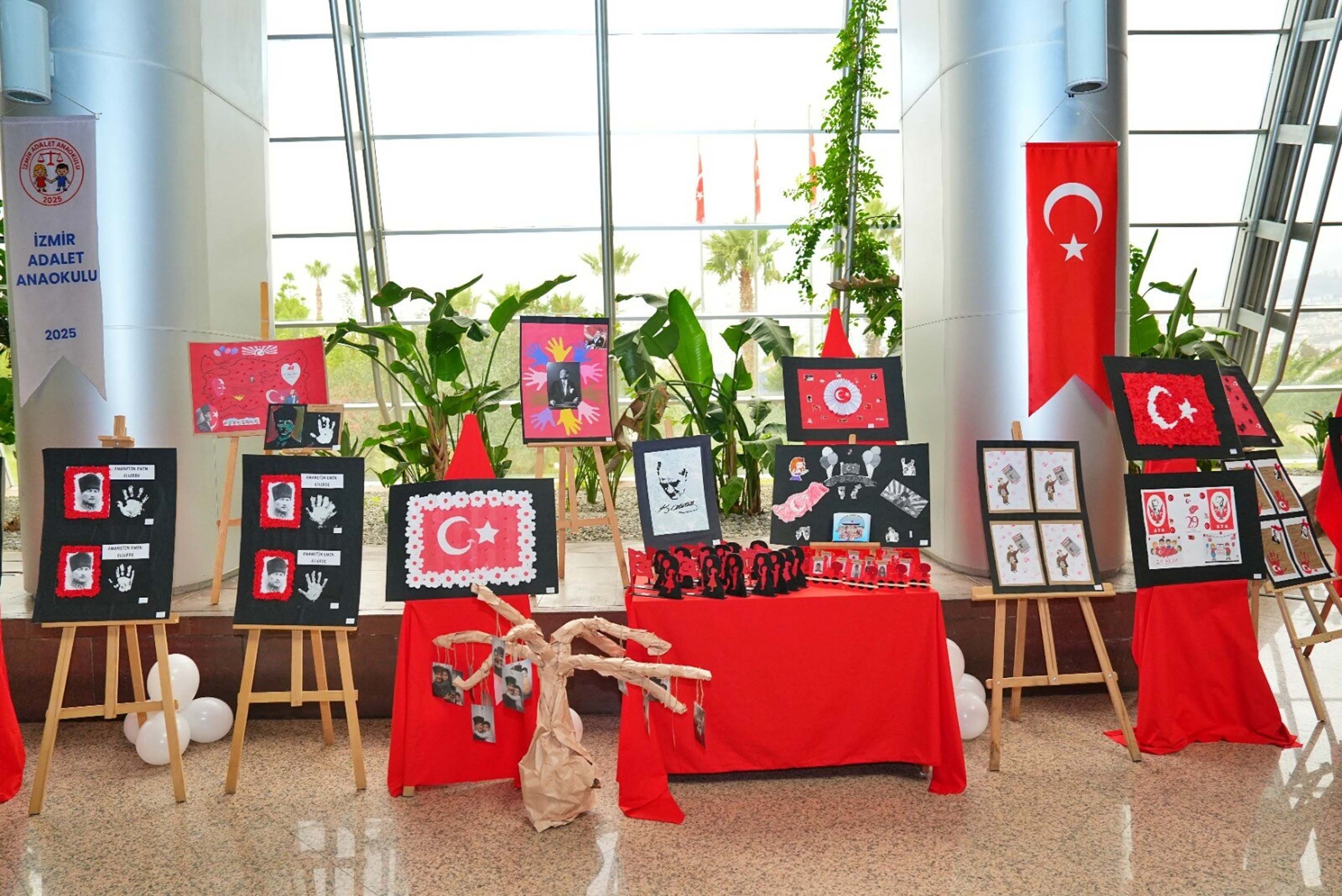 Anaokulu öğrencileri ise kendi hayal dünyalarından Mustafa Kemal Atatürk'ü, Cumhuriyet'i ve Türk bayrağını resmetti.