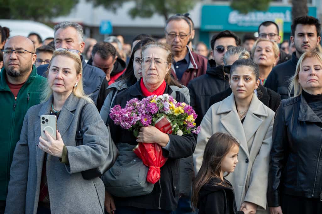Saatler, Ata’nın hayata gözlerini yumduğu 09.05’i gösterdiğinde İzmir’de hayat iki dakika boyunca durdu. Cumhuriyet Meydanı’ndan yükselen sirenler, taşıtların kornalarıyla tüm kente yayıldı. İZDENİZ gemileri körfezde sirenleriyle eşlik etti. İzmirliler 7’den 70’e toplu taşıma araçlarında, caddelerde, meydanlarda, sokaklarda, iş yerlerinde, okullarda, şehrin dört bir yanında Ata’ya saygı duruşunda bulundu.