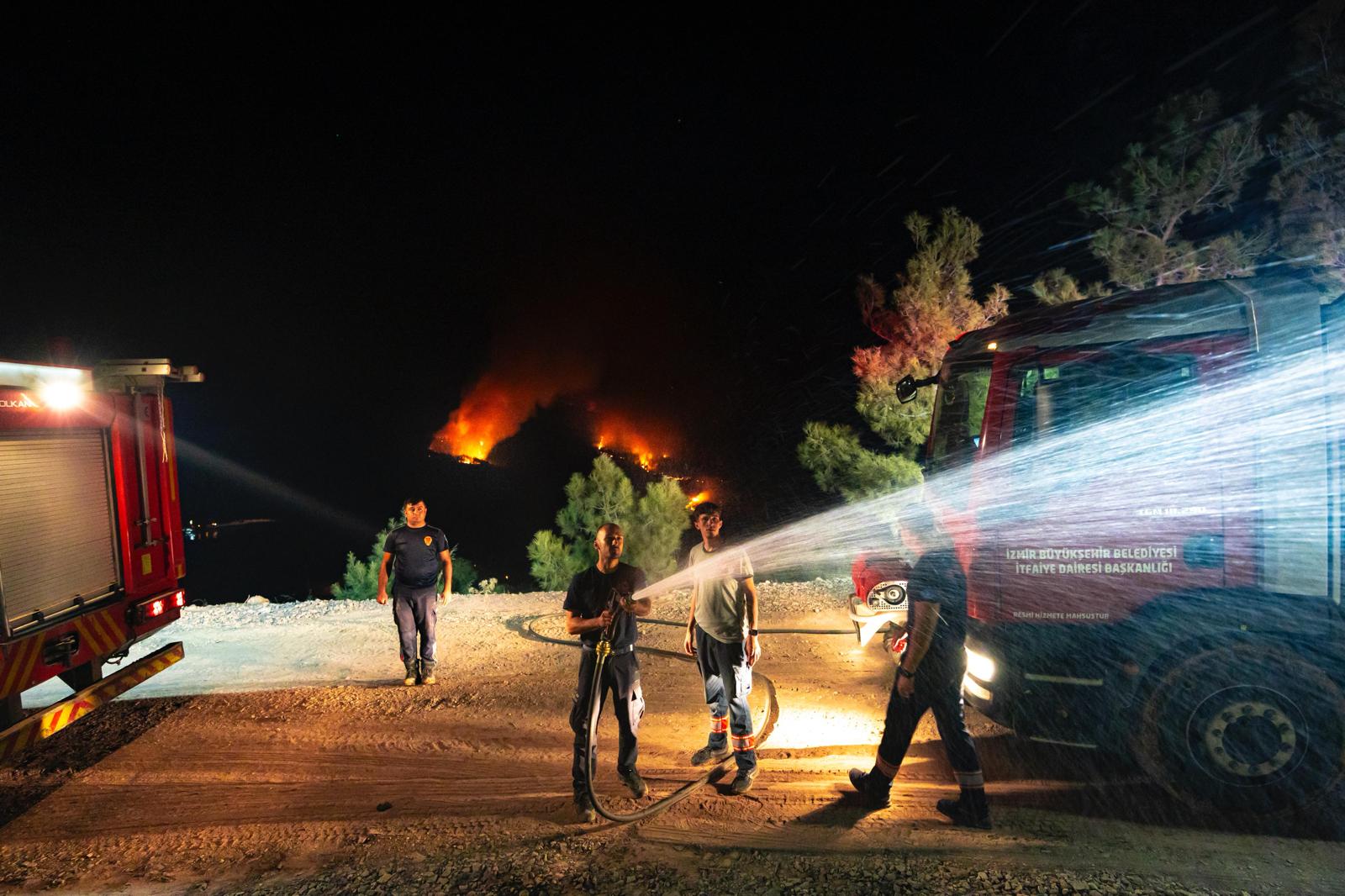 İzmir Büyükşehir Belediyesi İtfaiye Dairesi Başkanlığı’na bağlı ekipler, Denizli’de 29 Ağustos’ta Çatak Mahallesi ile Aydın’ın Buharkent ilçesi Kızıldere Mahallesi arasında başlayan ve rüzgarın etkisiyle geniş bir alana yayılan orman yangınıyla mücadeye destek vermek üzere bölgeye gitti.