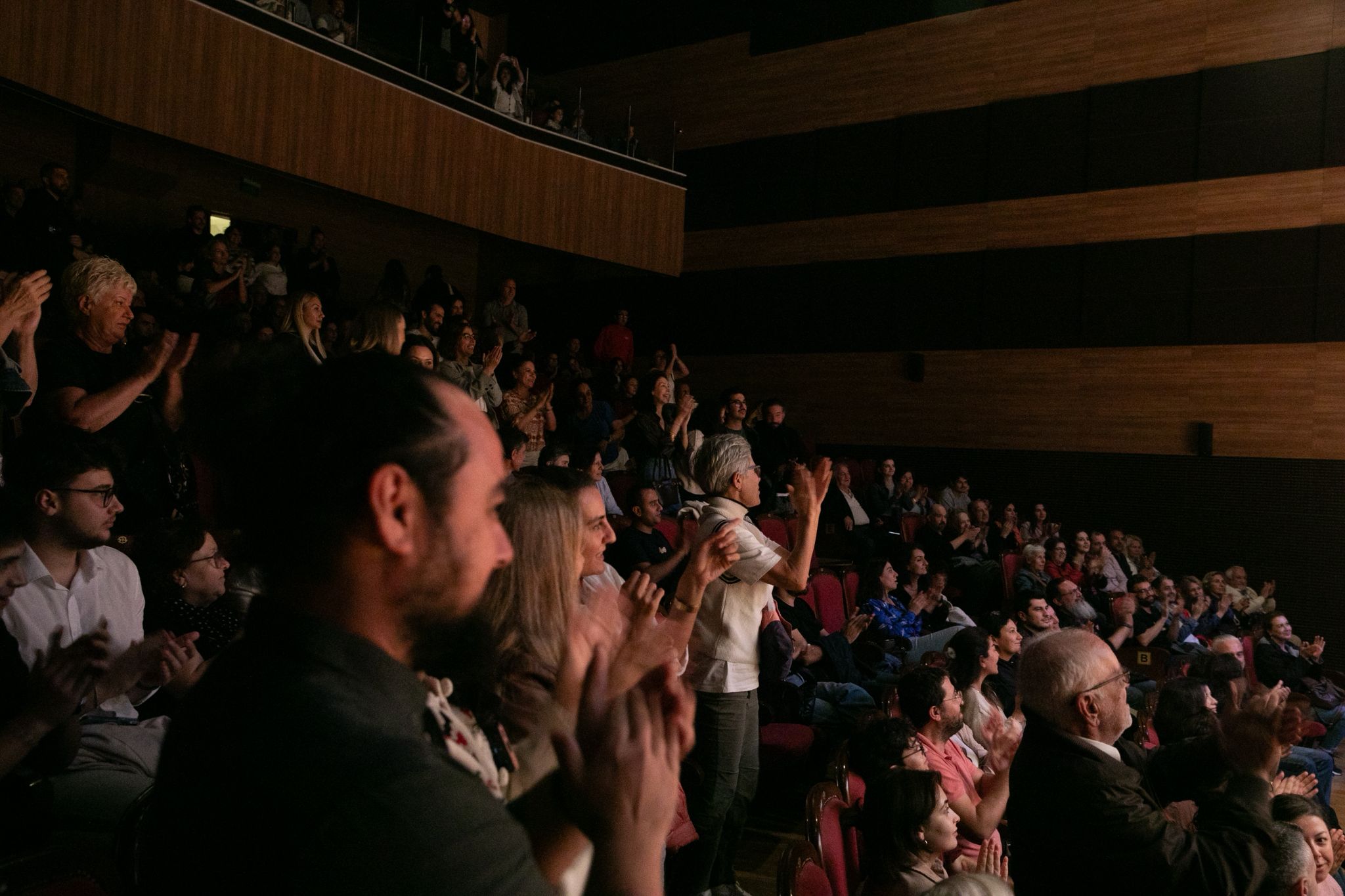 Gösterimin ardından tüm tiyatro emekçileri ile sahneye çıkarak seyirciye seslenen İzBBŞT Genel Sanat Yönetmeni Levent Üzümcü, “İzmir Şehir Tiyatroları olarak Karşıyaka’da, sizlerle birlikte yeni sahnemizde sezonu açmış olmanın mutluluğunu yaşıyoruz. İzmir Şehir Tiyatroları’nda görev alan yüzü aşkın sanat emekçisi olarak, her akşam tiyatroyu sizlere ulaştırabilmek için didiniyoruz. Sizlerden tek bir ricamız var; lütfen kendinizi sanatsız, bizleri de seyircisiz bırakmayın” dedi.