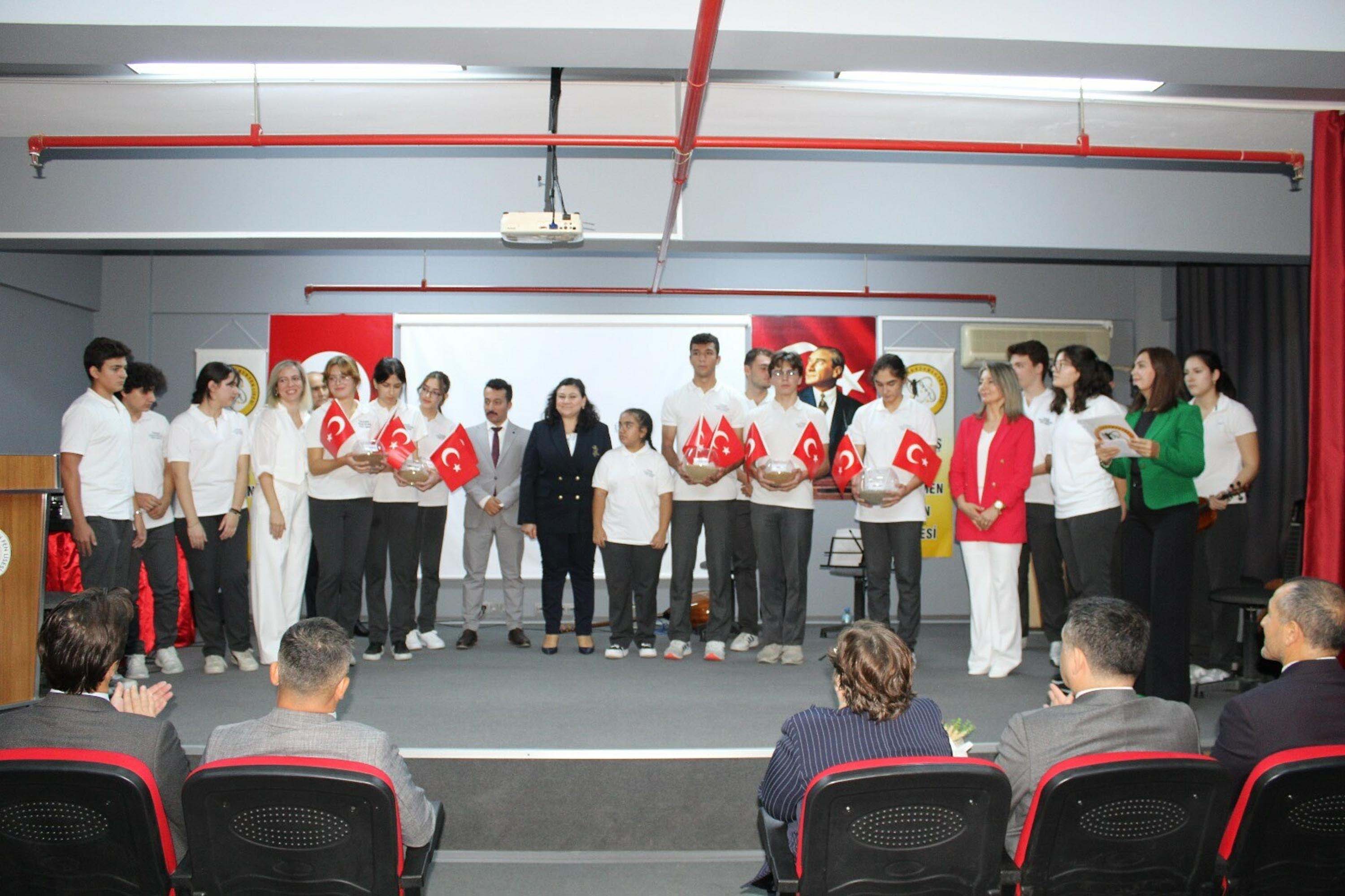 Harmanlanan toprakla okulun bahçesine Cumhuriyet'in 102’nci yılı anısına 7 bölgeyi temsilen çınar fidanı dikildi. Programda proje ortağı okullardan gelen tanıtım videolar izlendi. Müzik grubunun, 7 bölgeye ait türküleri seslendirmesi programa renk kattı. Etkinlik, okulun zeybek ekibinin gösterisi ile sona erdi.